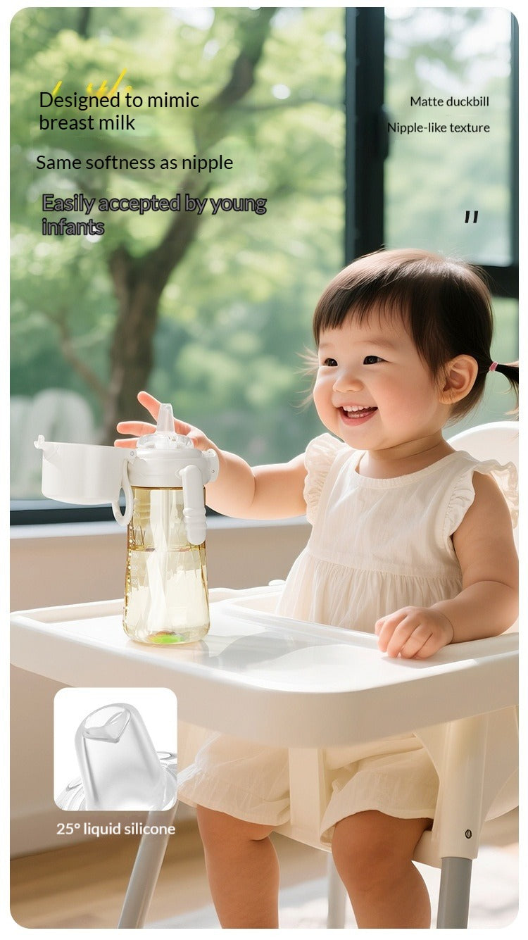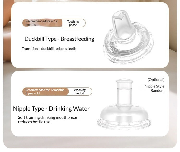 Includes a duckbill spout (6–12 months) and straw spout (1–3 years), supporting every stage from training to independent drinking.