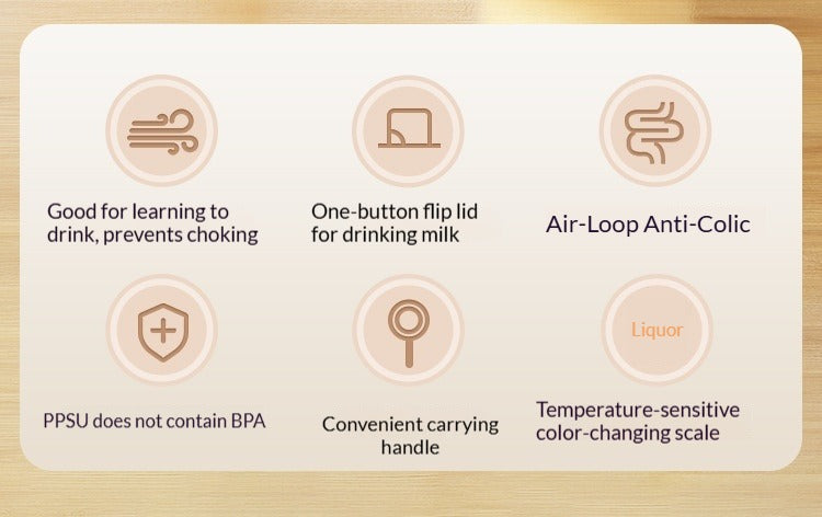 PPSU Temperature-Sensing Training Cup Anti-Choke & Anti-Colic Tooth-Friendly Flat Spout One-Touch Flip Lid Grow-With-Baby Drinking Cup