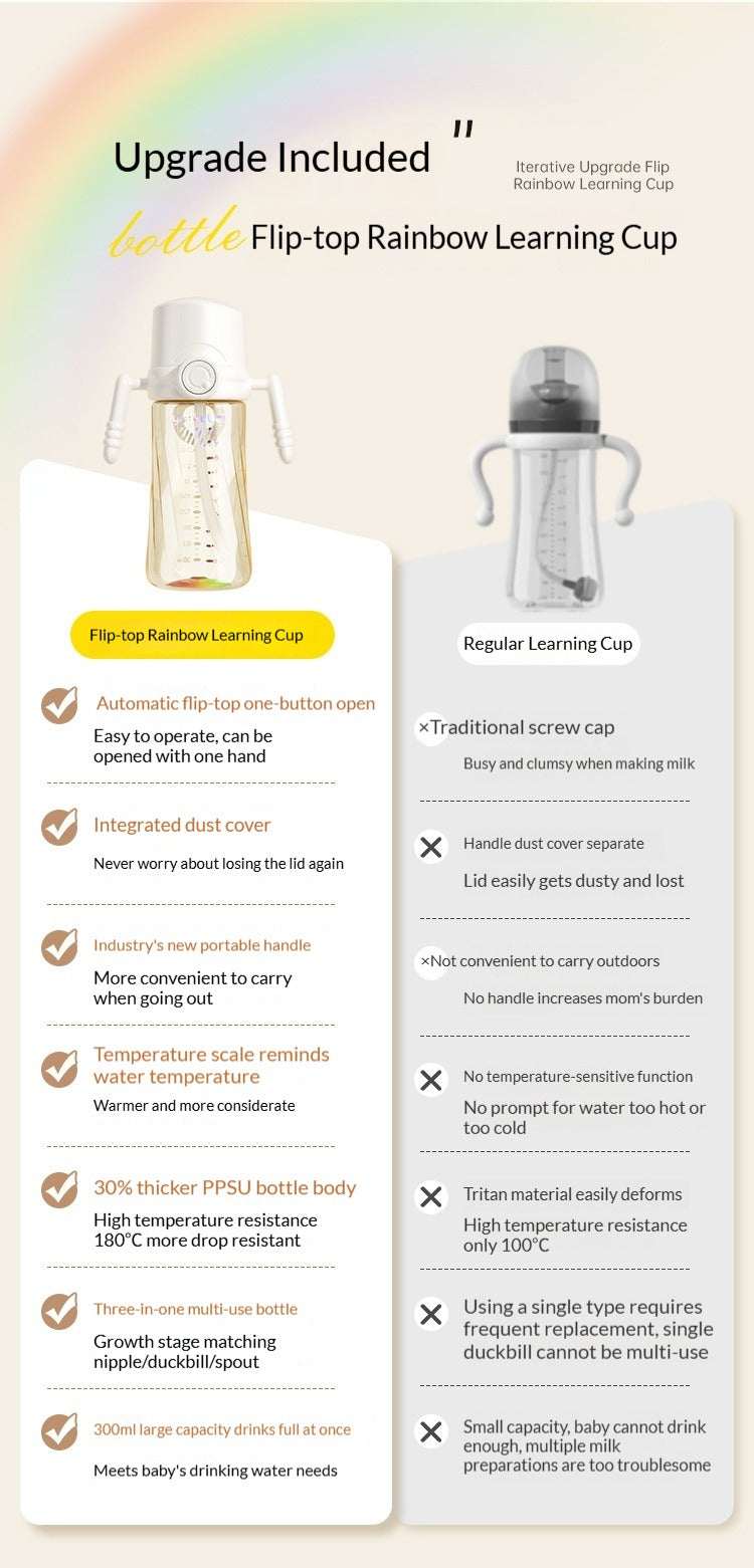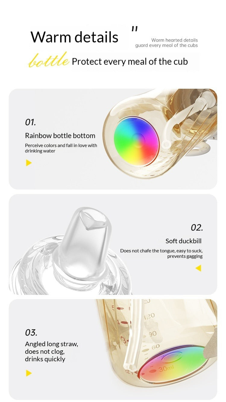 The rainbow base instantly captures baby’s attention, turning drinking into a fun little game and encouraging better hydration.