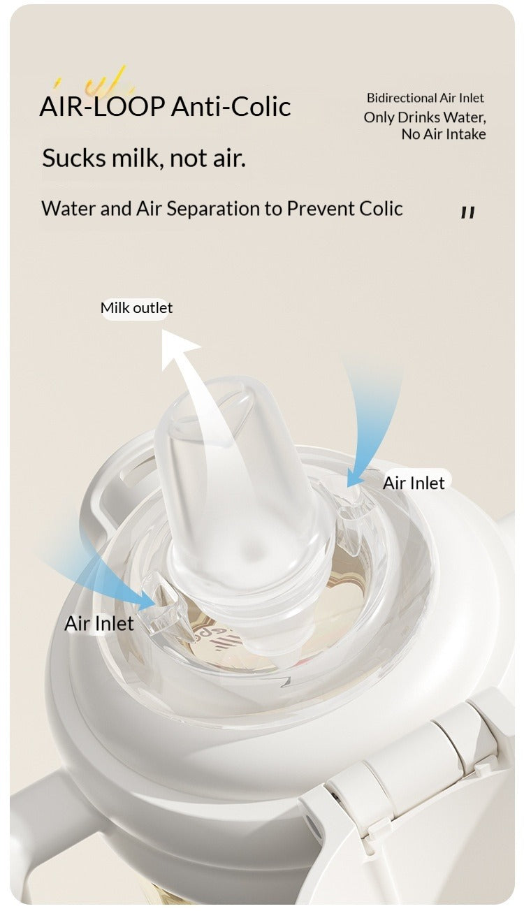 Gentle flow with light sipping to reduce choking. The Air-Loop anti-colic design minimizes air intake for a more comfortable drinking experience.
