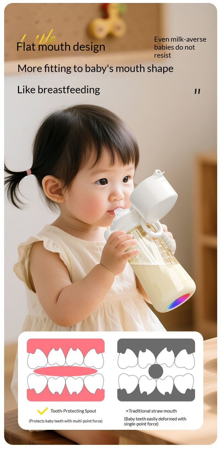 The flat spout fits baby’s mouth naturally, mimicking breastfeeding. Even pressure helps protect developing teeth and reduces the risk of buck teeth—perfect for fussy or weaning babies.