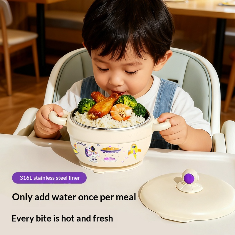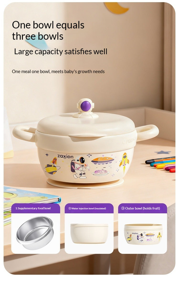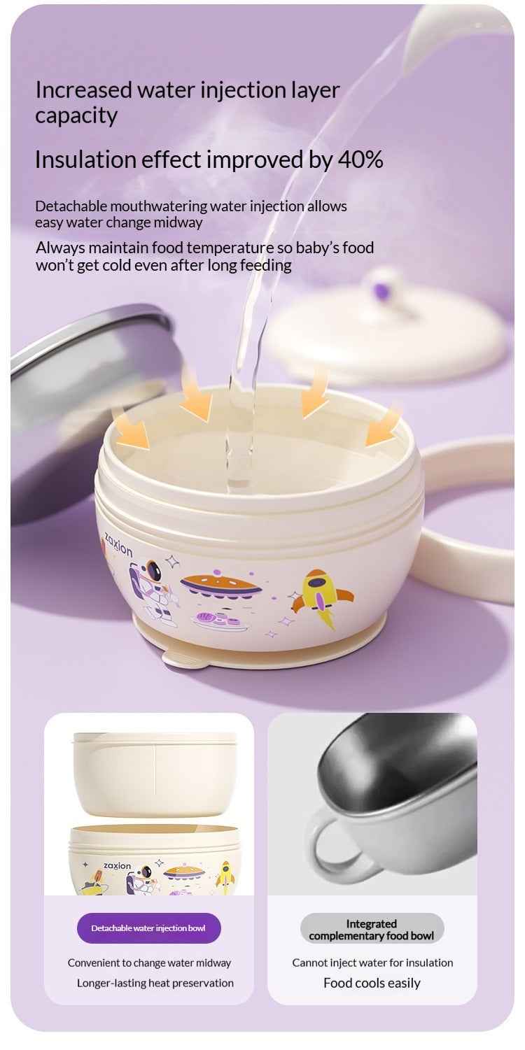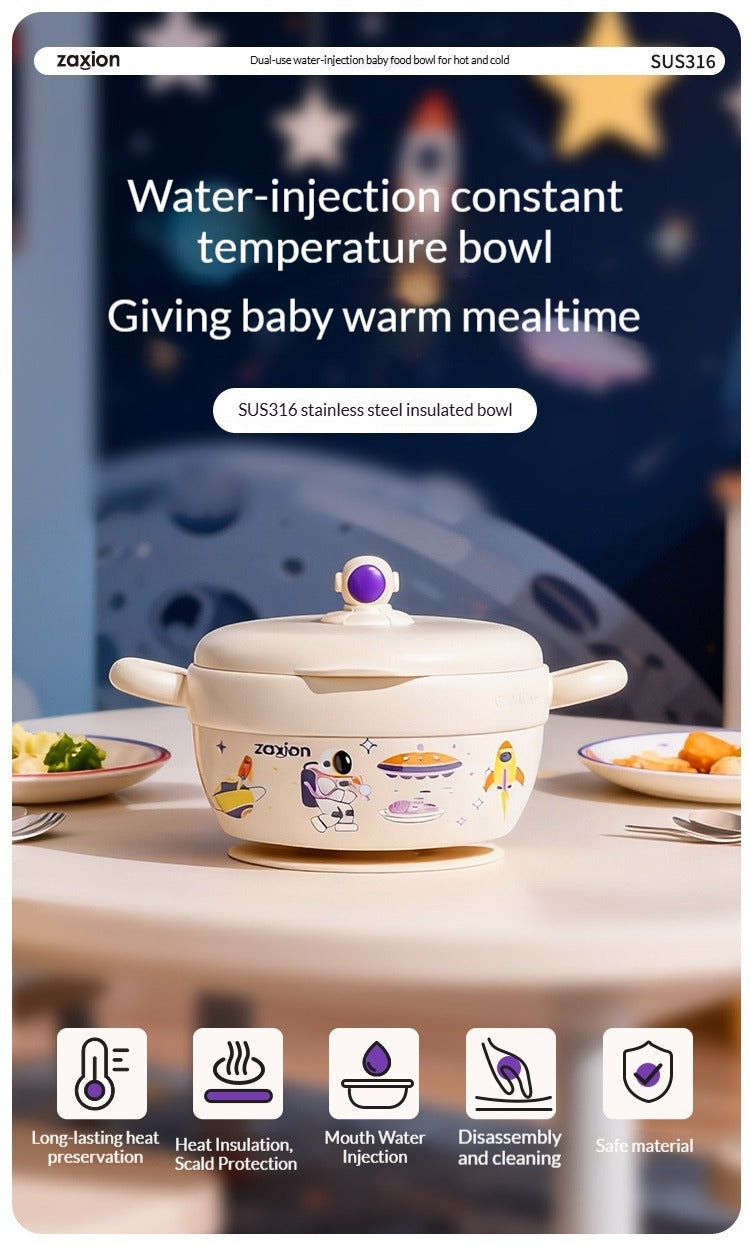 316 Stainless Steel Water-Filled Thermal Feeding Bowl  Long-Lasting Heat Retention & Anti-Scald Anti-Tip Suction Base Baby Weaning Bowl 6 Months+