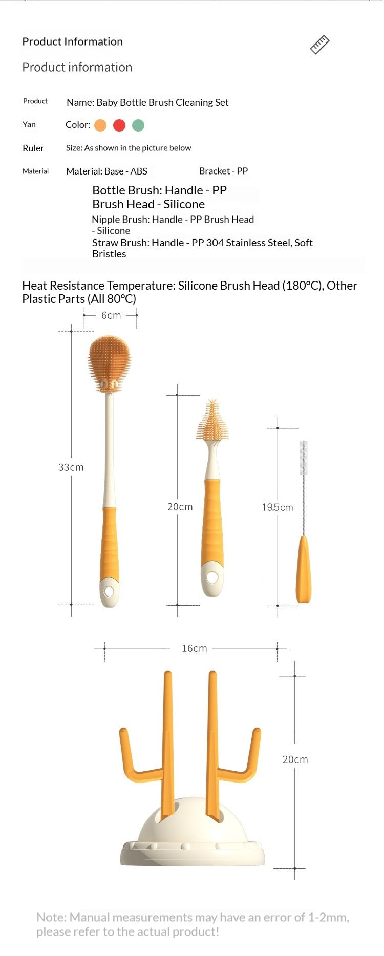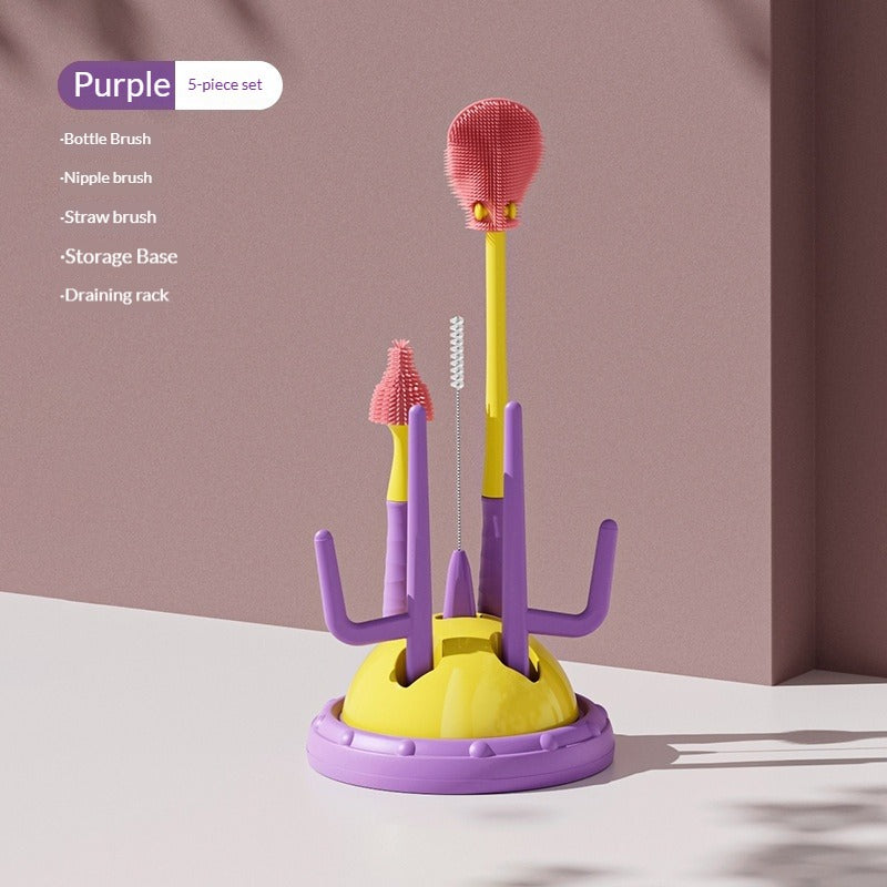 Drip-Drying Baby Bottle Cleaning Brush Set Food-Grade Silicone Soft Brush Heads Multi-Brush Maternity & Baby Bottle Cleaning Tool