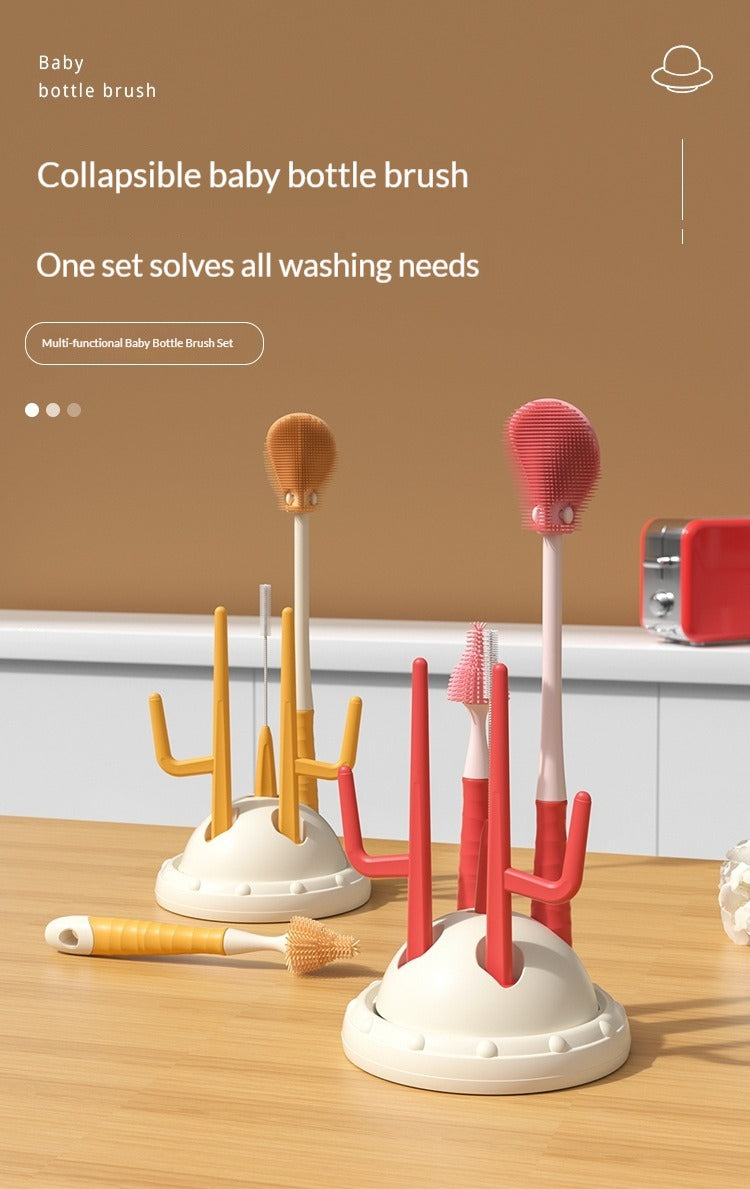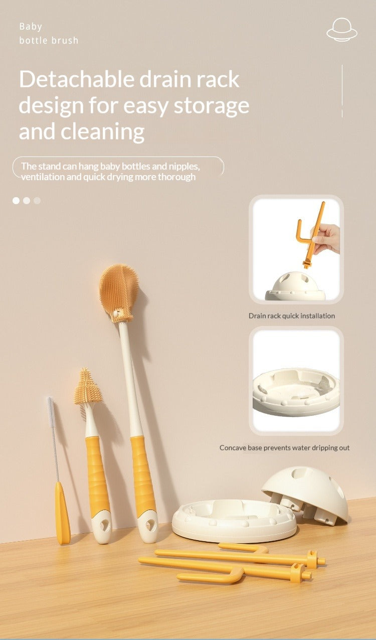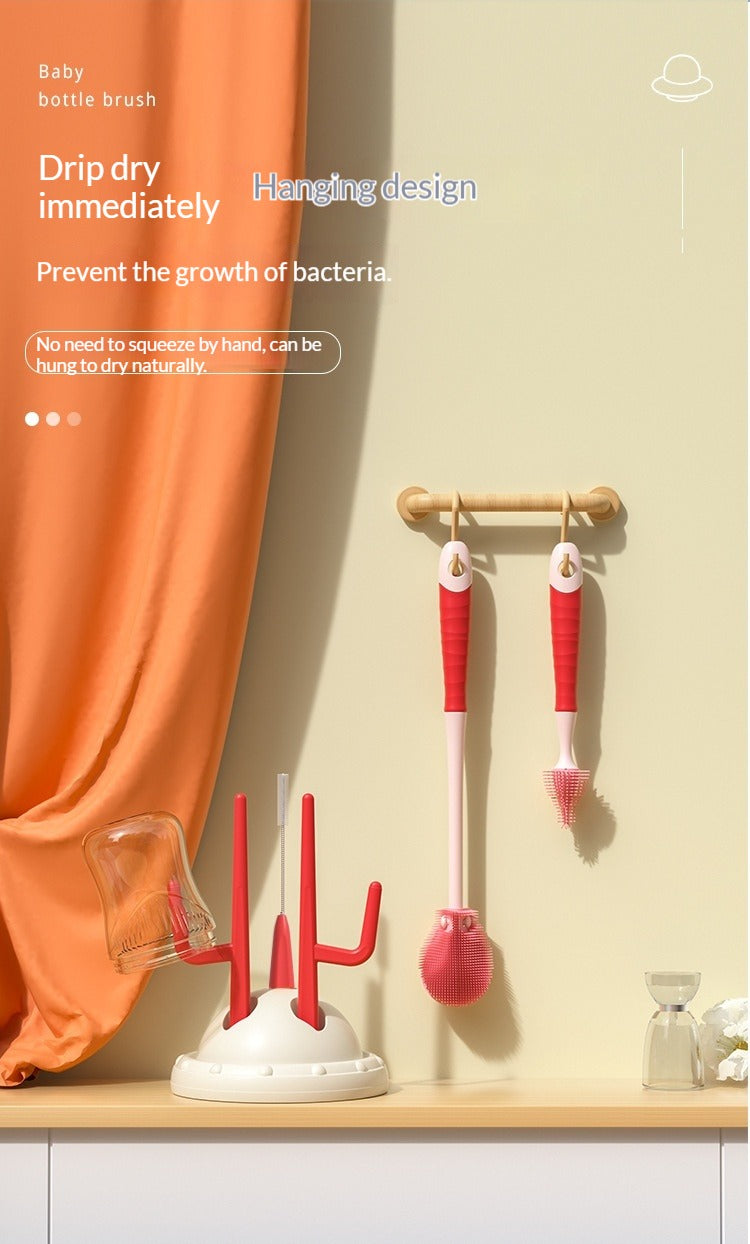 Drip-Drying Baby Bottle Cleaning Brush Set Food-Grade Silicone Soft Brush Heads  Multi-Brush Maternity & Baby Bottle Cleaning Tool