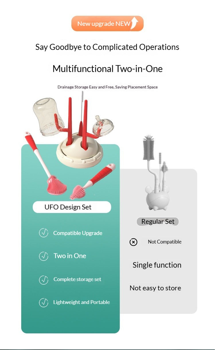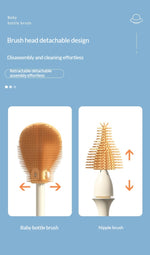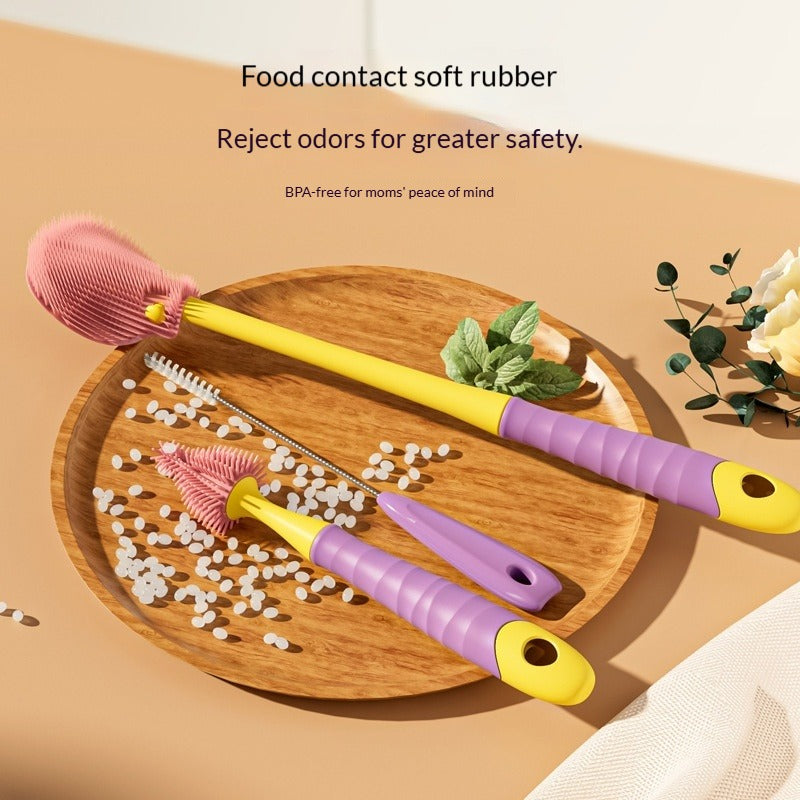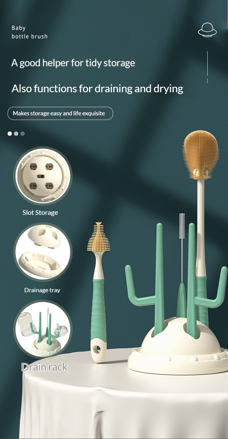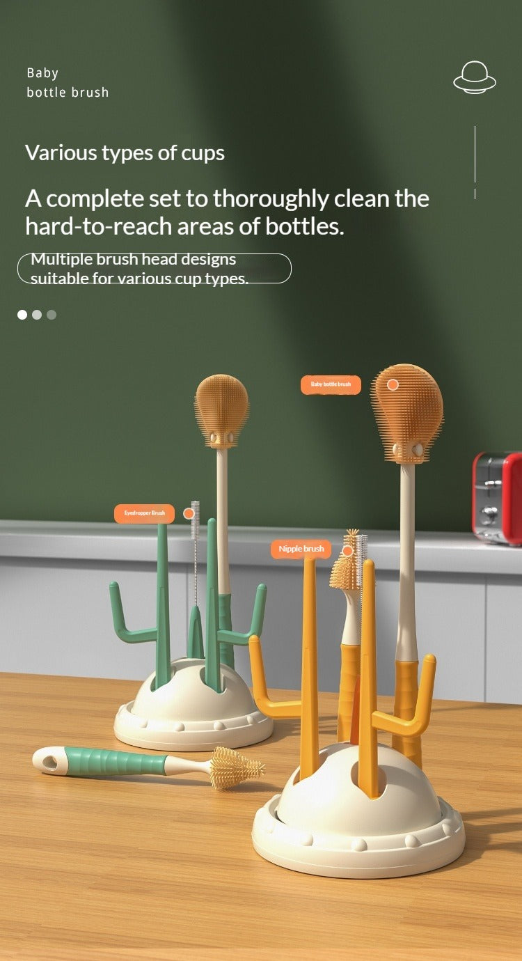 Drip-Drying Baby Bottle Cleaning Brush Set Food-Grade Silicone Soft Brush Heads  Multi-Brush Maternity & Baby Bottle Cleaning Tool