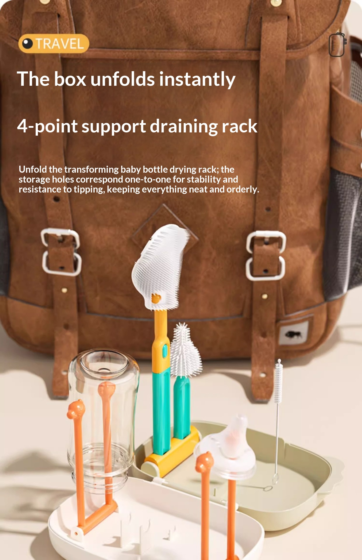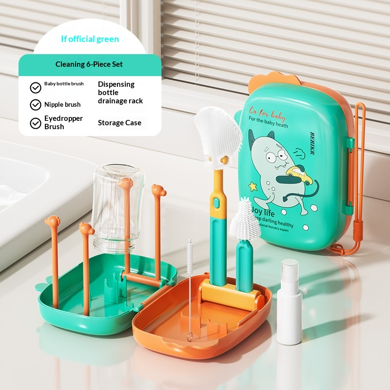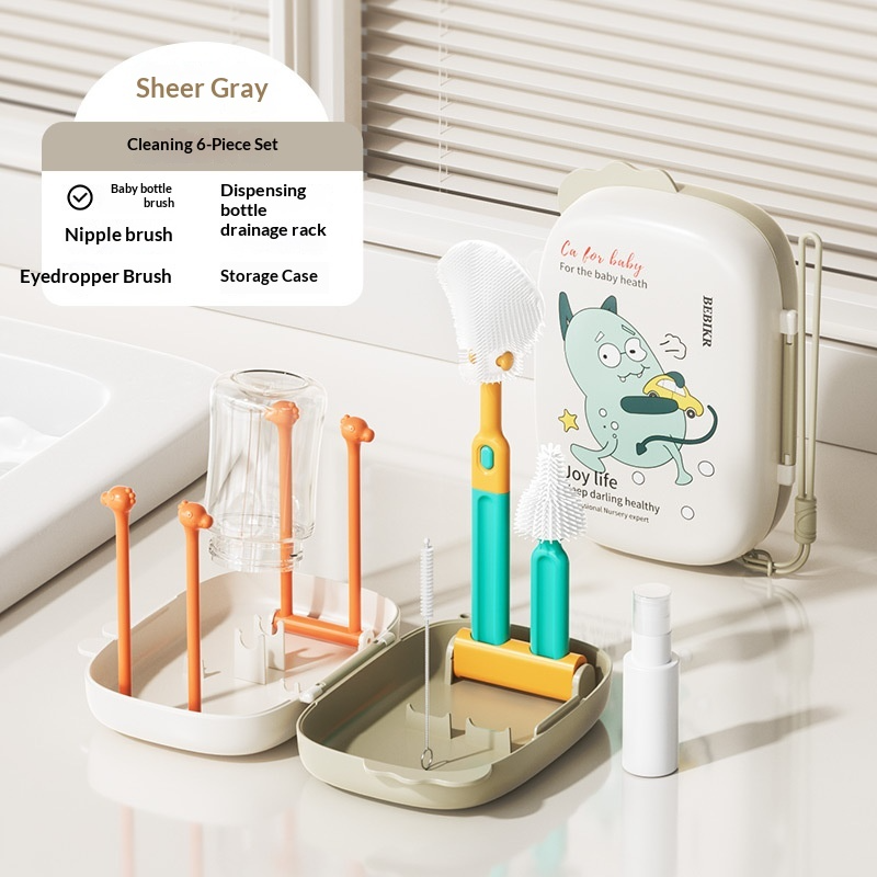 High-Temperature Resistant Silicone Baby Bottle Brush Foldable & Portable 6-Piece Cleaning Brush Set