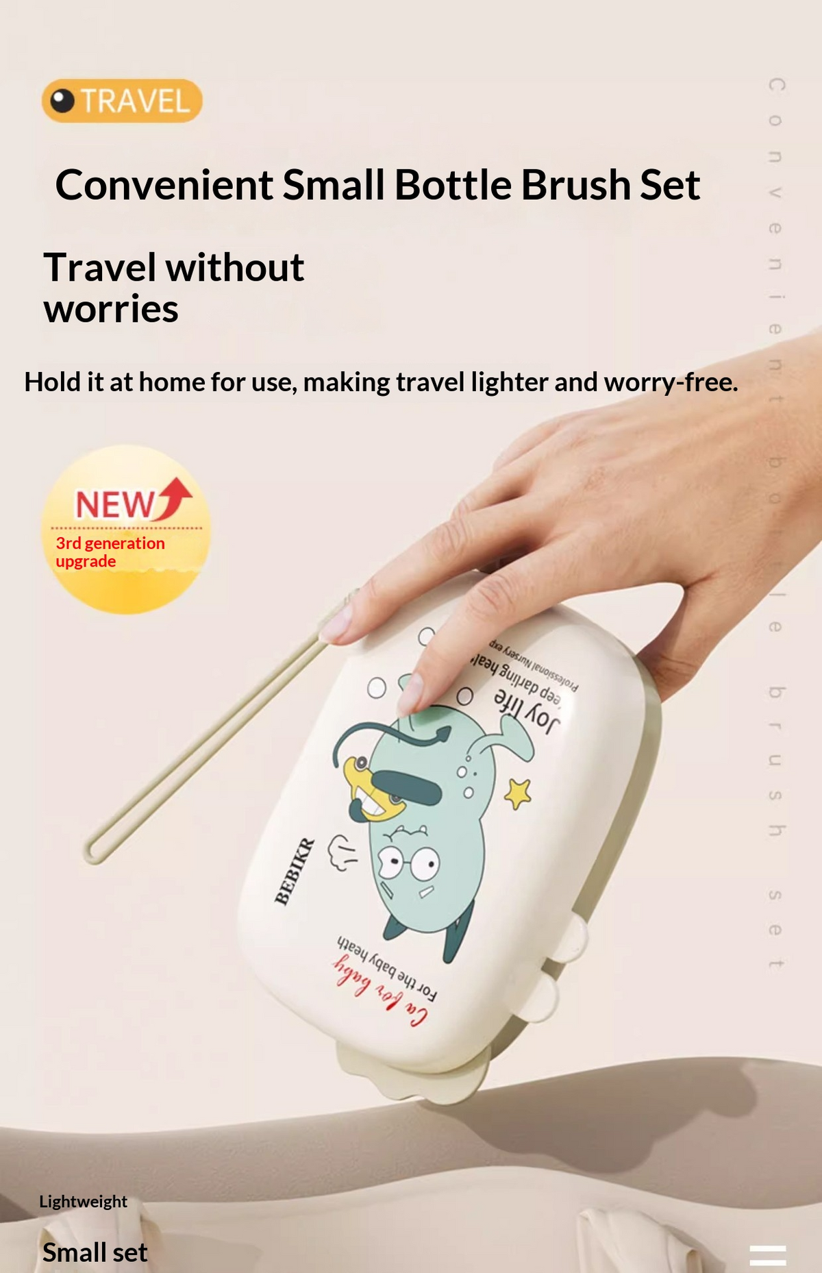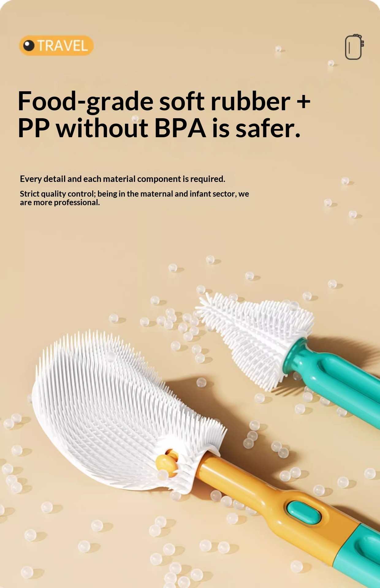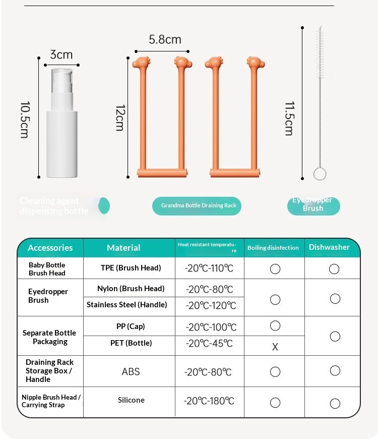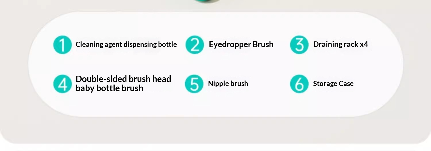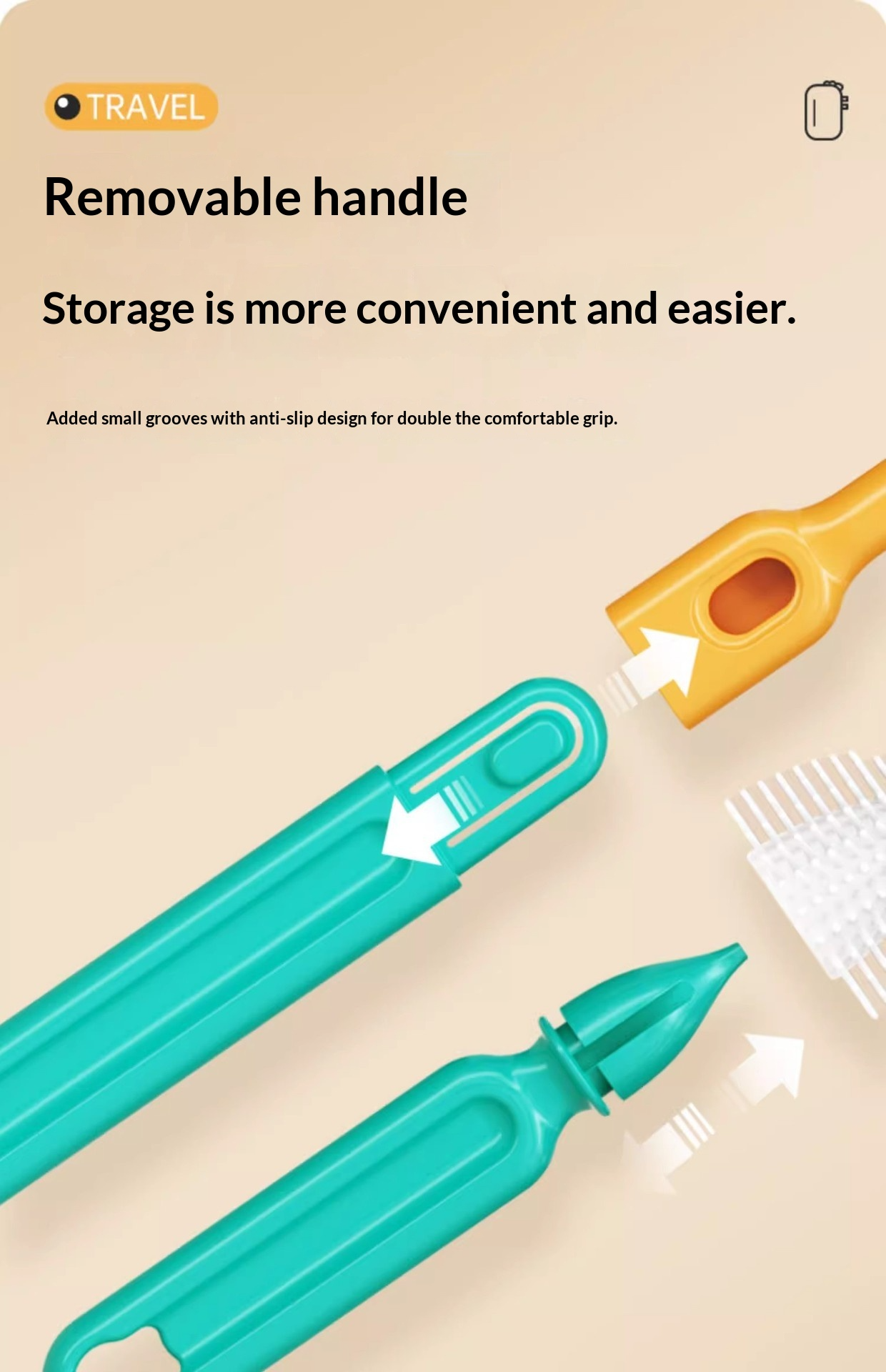 Three-Brush System: Bottle brush + nipple brush + straw brush, targeted cleaning for tough stains