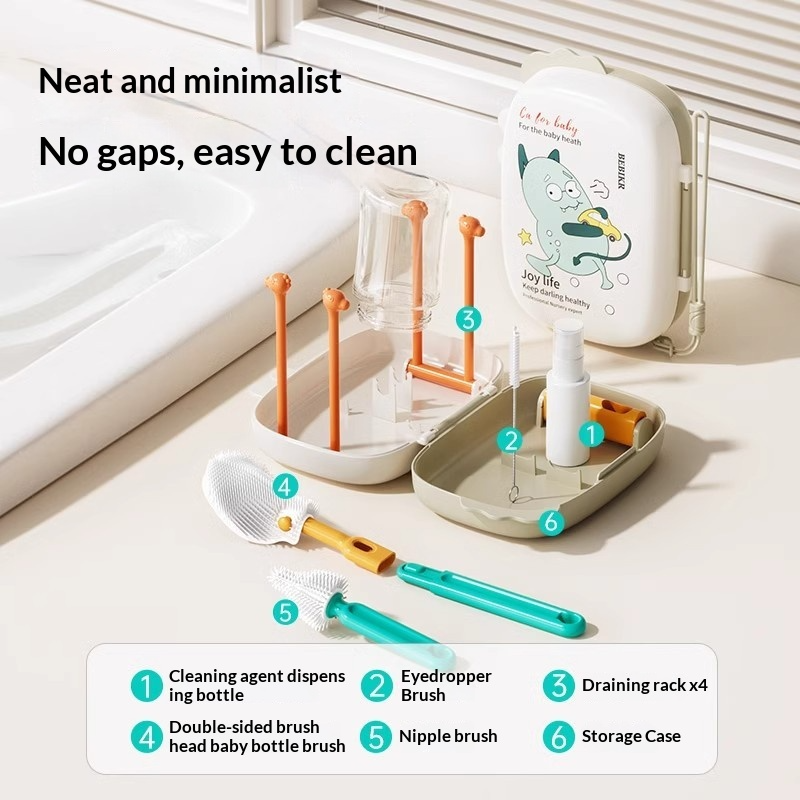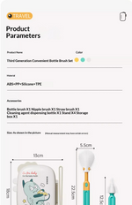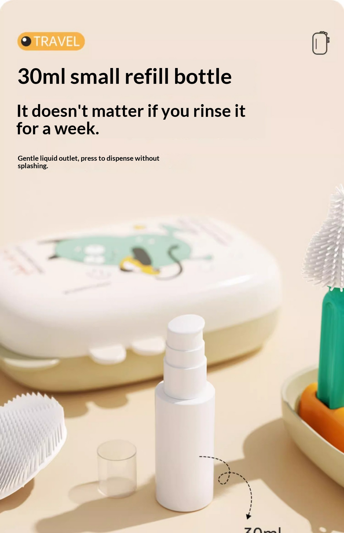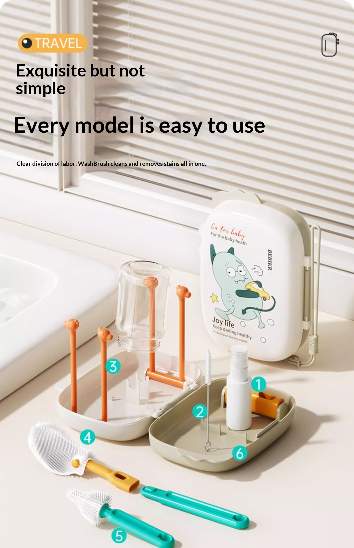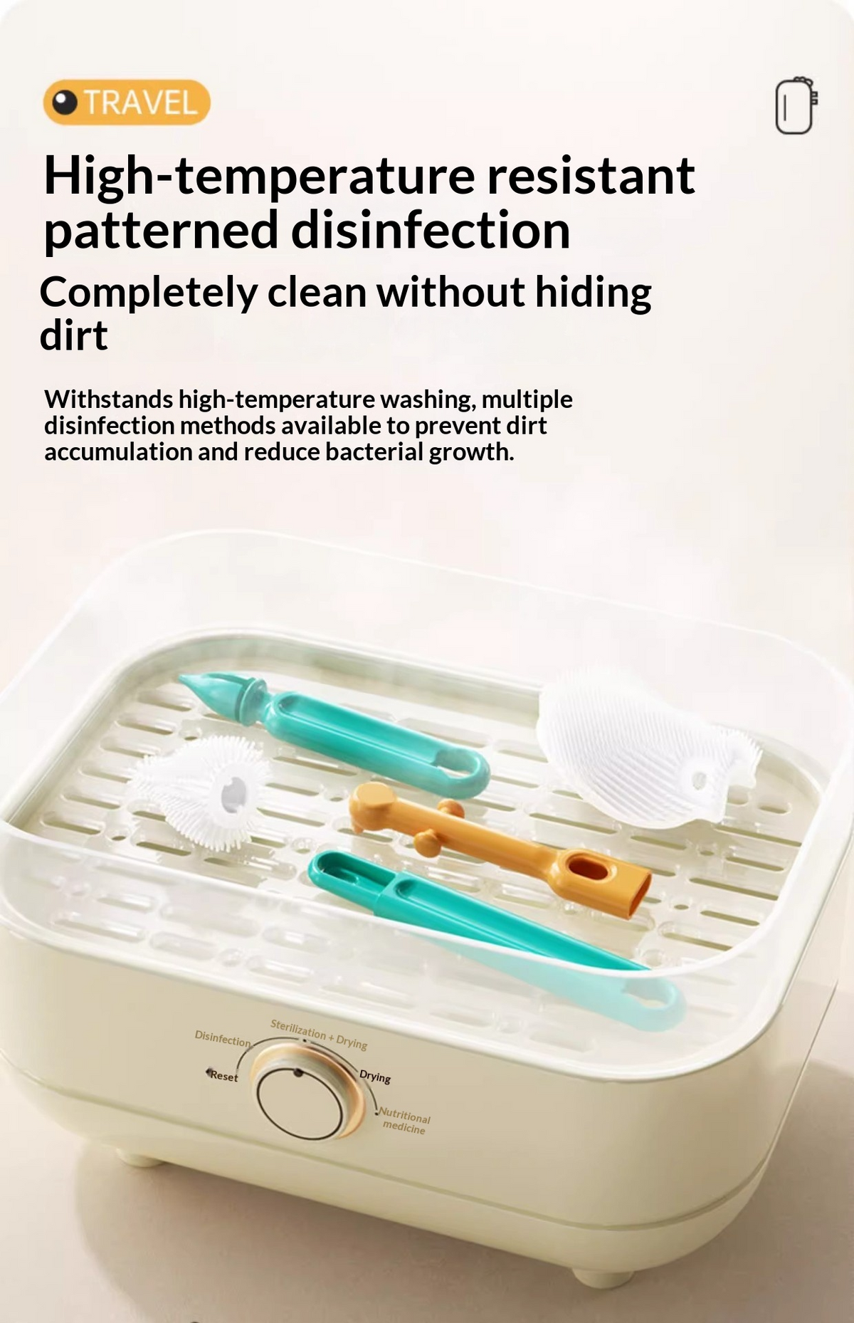 Three-Brush System: Bottle brush + nipple brush + straw brush, targeted cleaning for tough stains