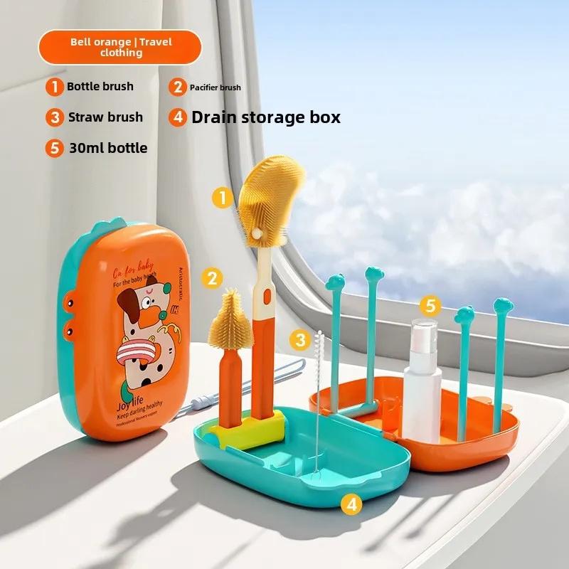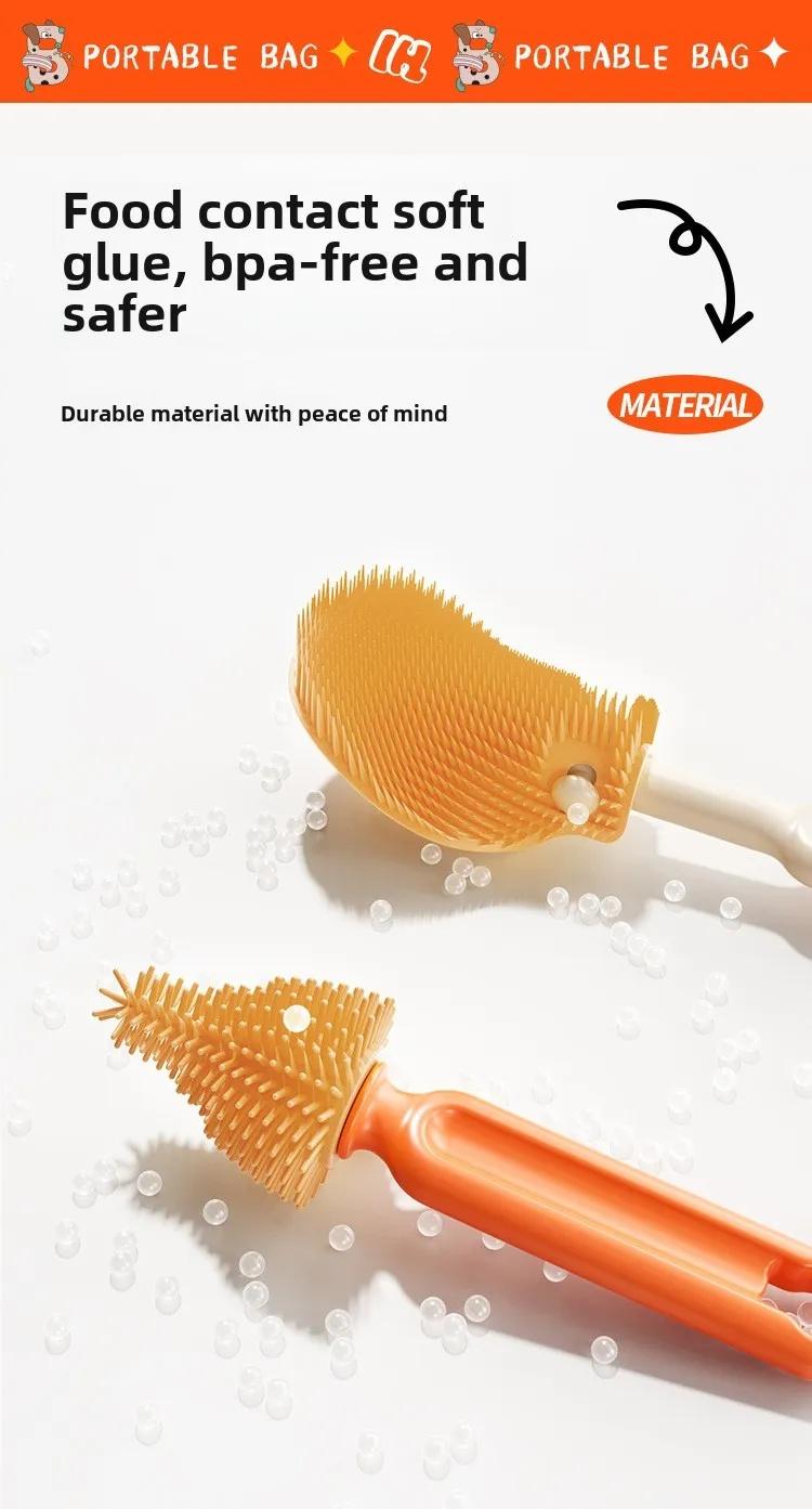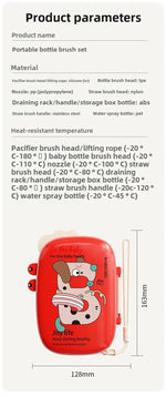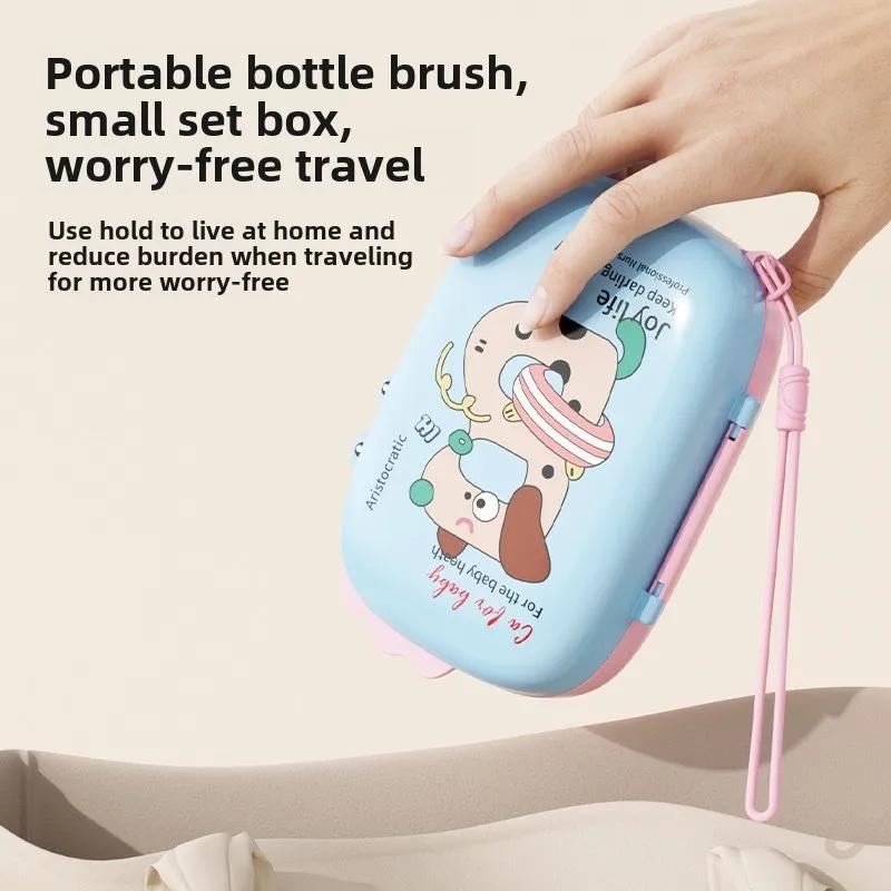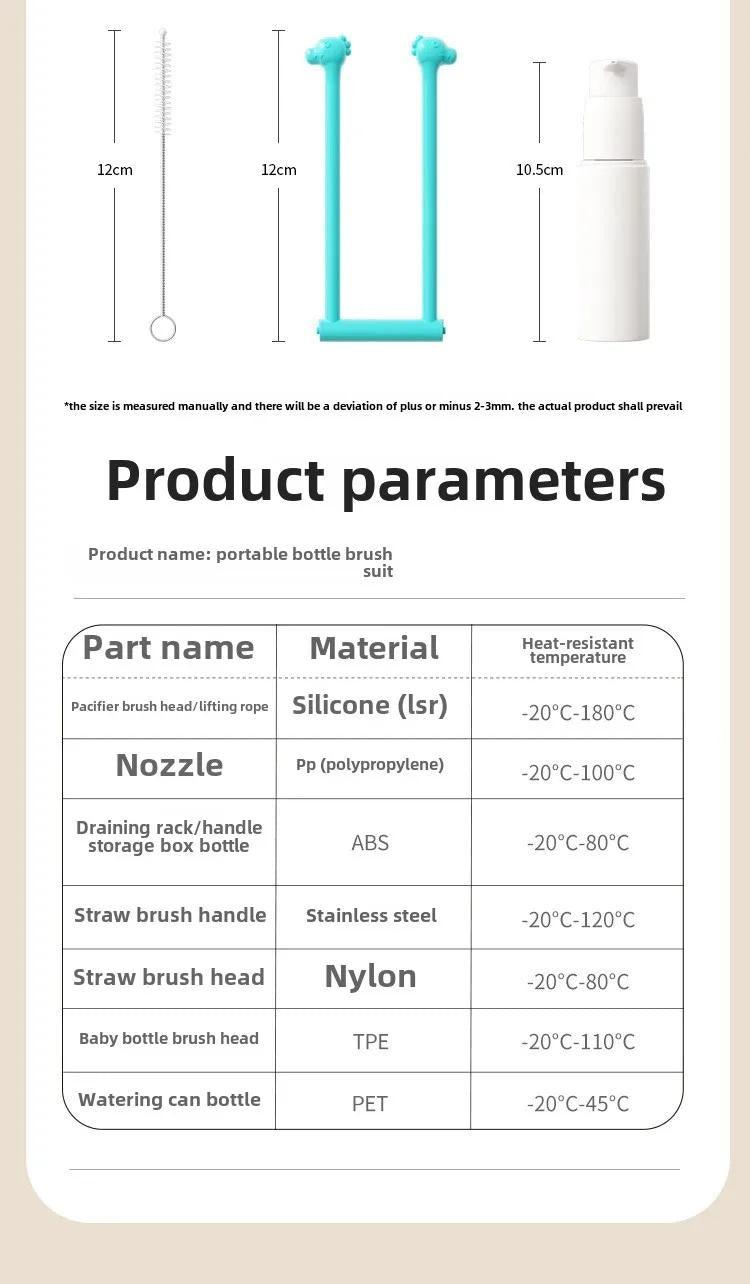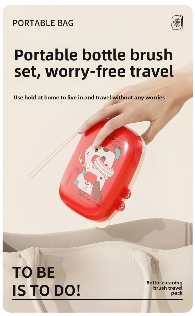 Portable Baby Bottle Brush Set Compact Storage 360° Deep Clean Heat-Resistant Safe Materials