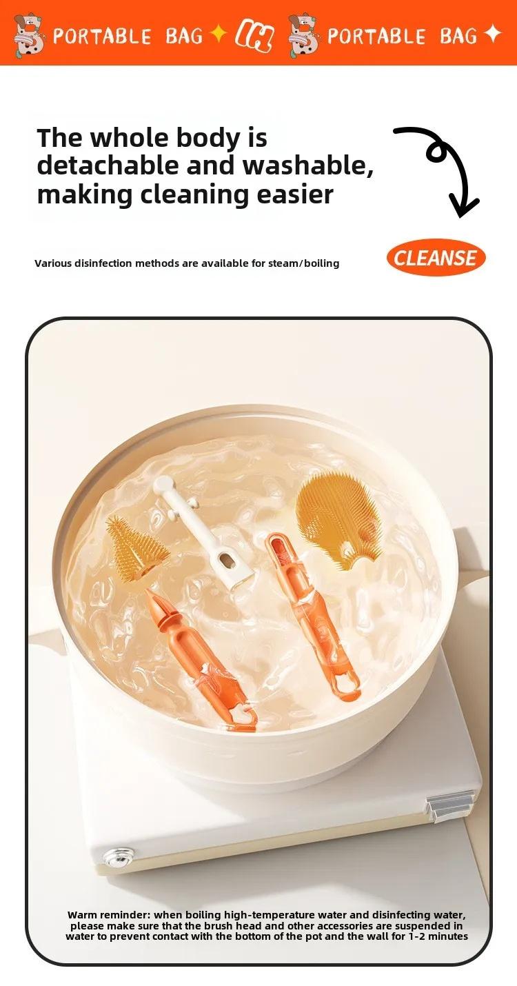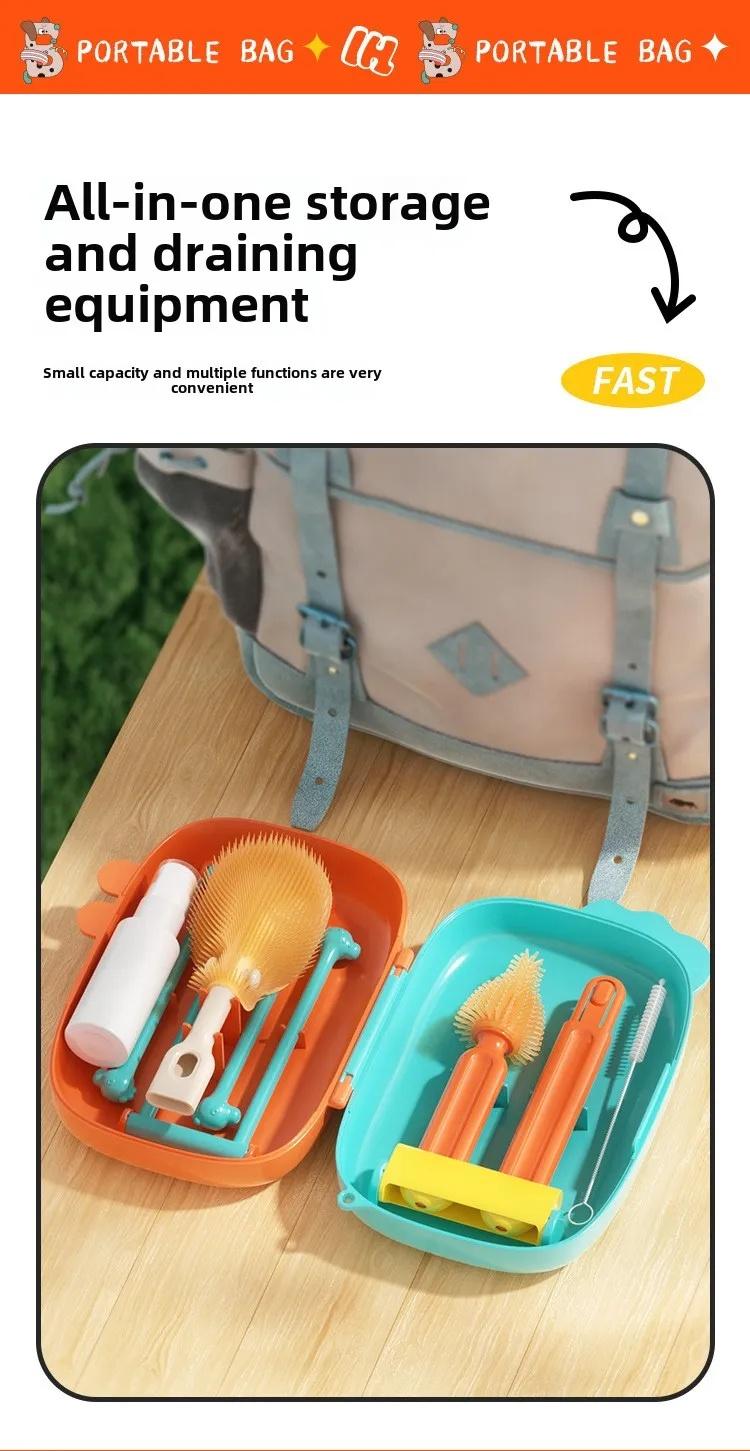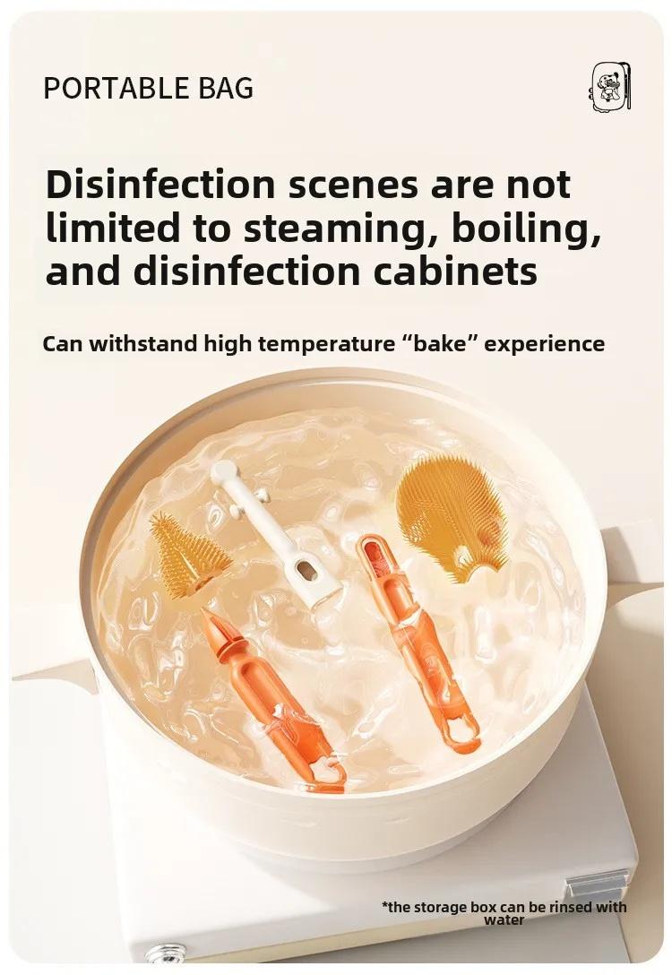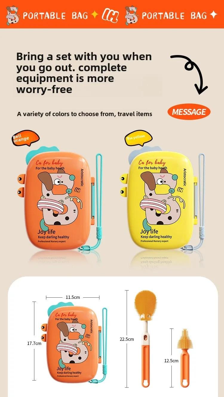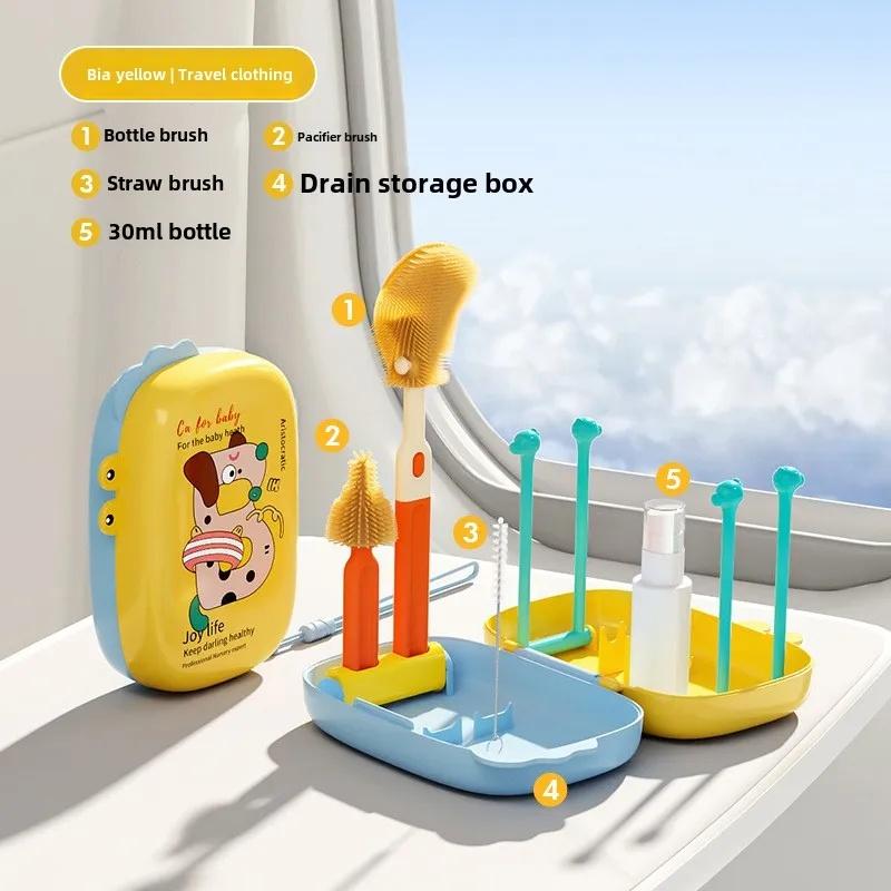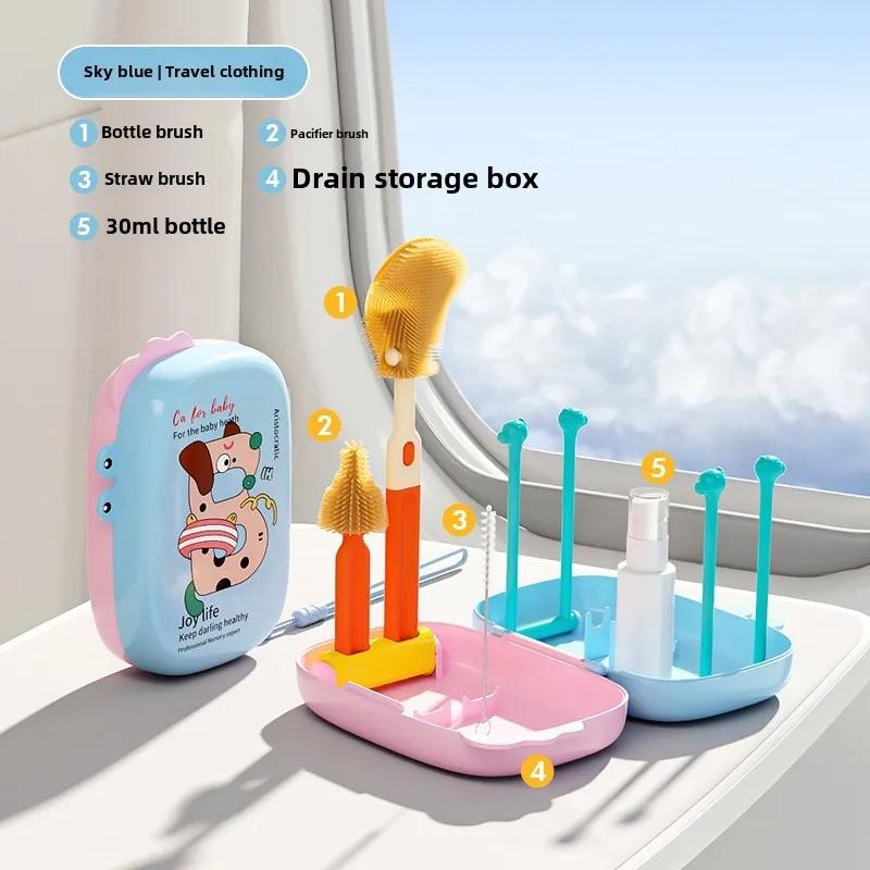 Portable Baby Bottle Brush Set Compact Storage 360° Deep Clean Heat-Resistant Safe Materials