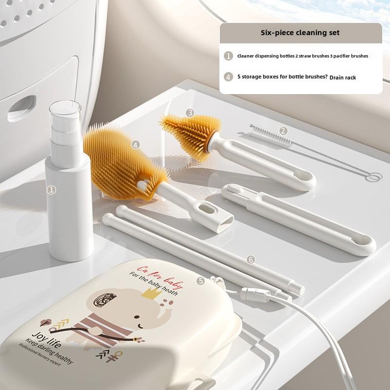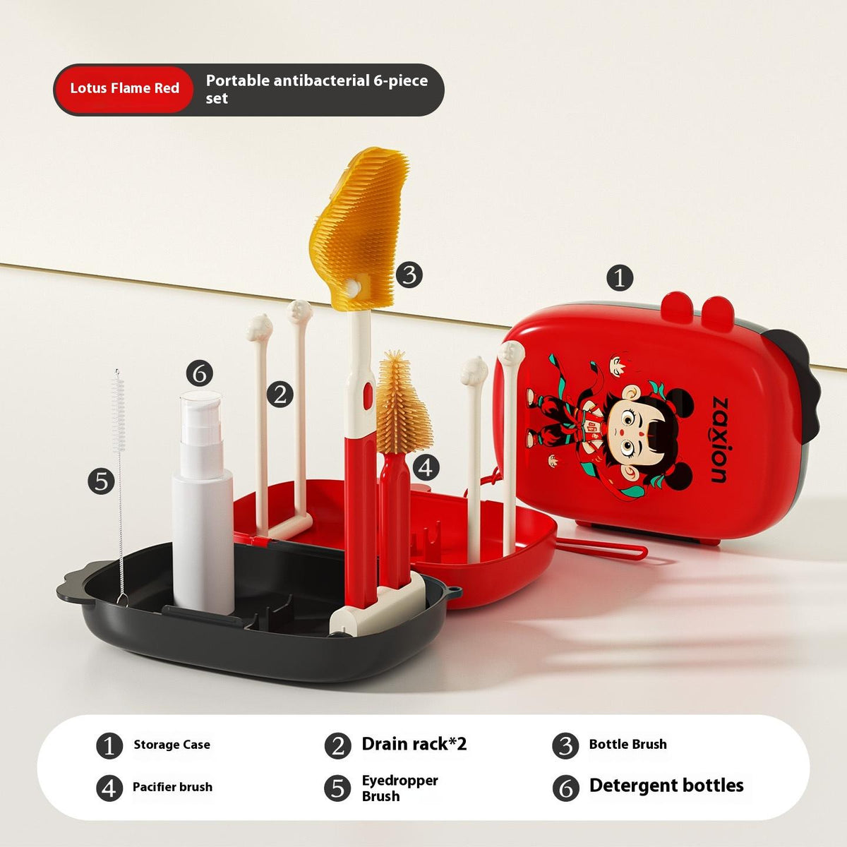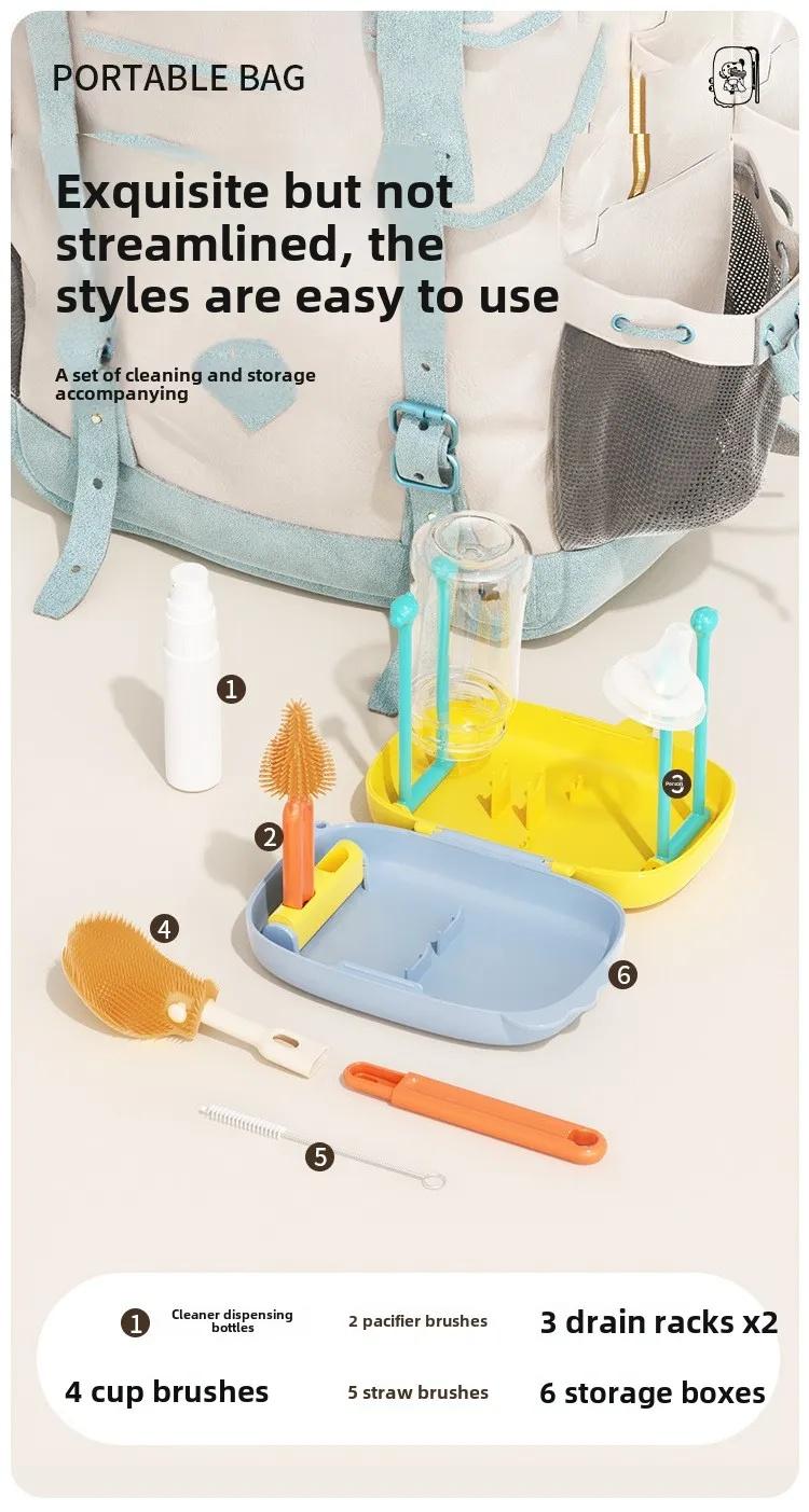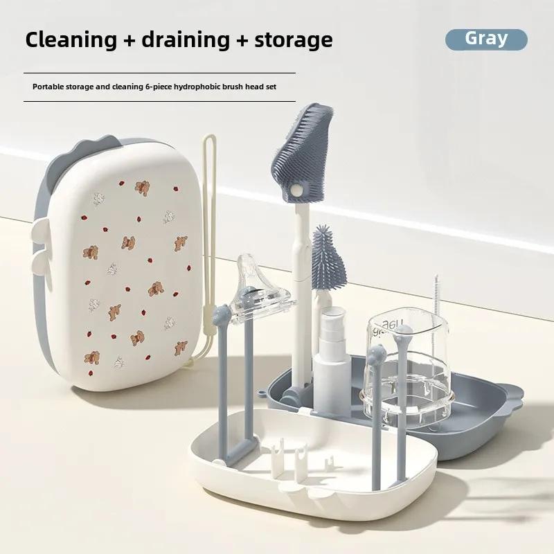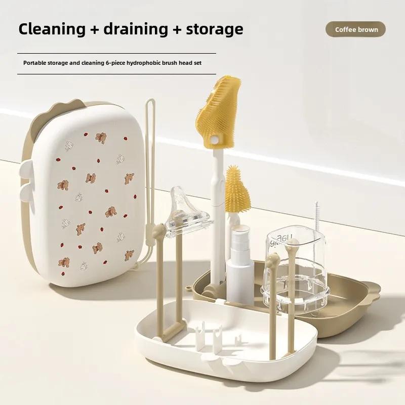 Portable Baby Bottle Brush Set Compact Storage 360° Deep Clean Heat-Resistant Safe Materials