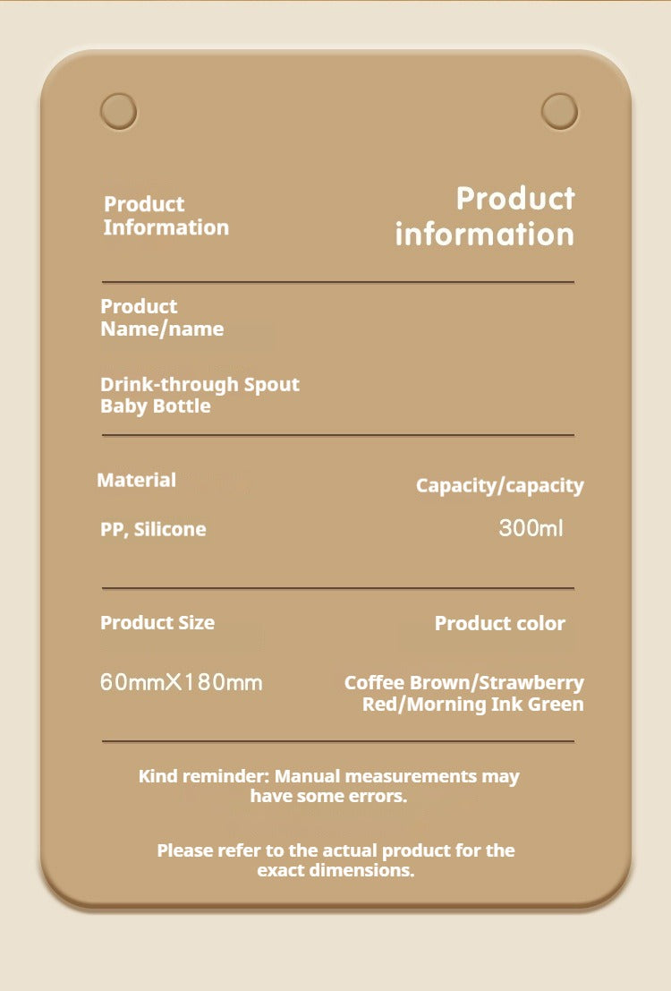 Toddler Straw Bottle with Direct Sip Spout 1–3 Years Training Cup For Milk Water Anti-Colic Anti-Choking Design