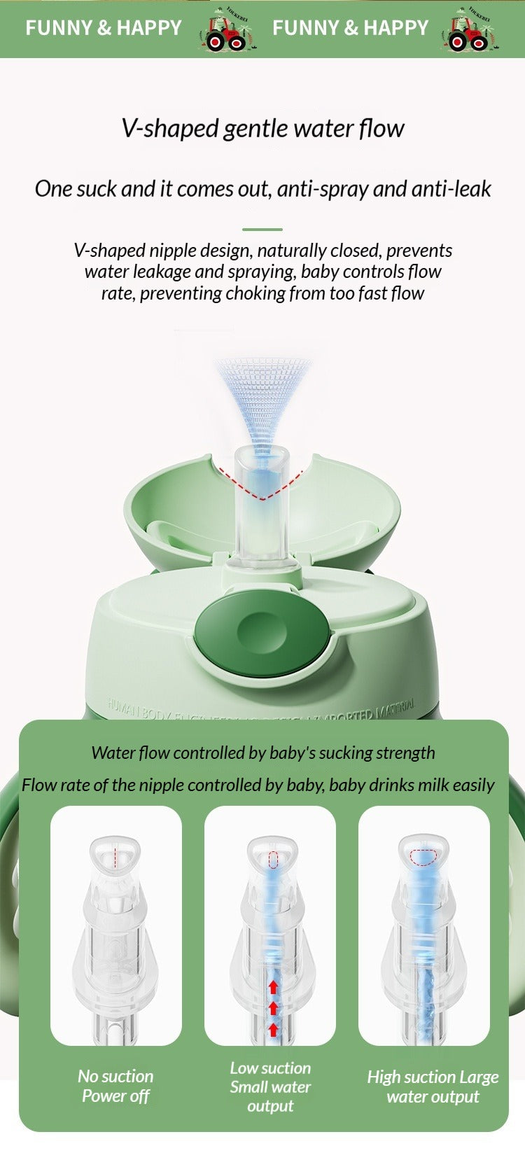 • V-Shaped Anti-Choking Spout: Naturally closes, baby controls the flow with suction