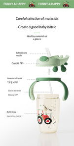 Baby Bottle & Training Cup 6 Months+ Flip-Top Straw Cup for Toddlers 1 Year+ 3-in-1 Leak-Proof Drinking Cup with Handles