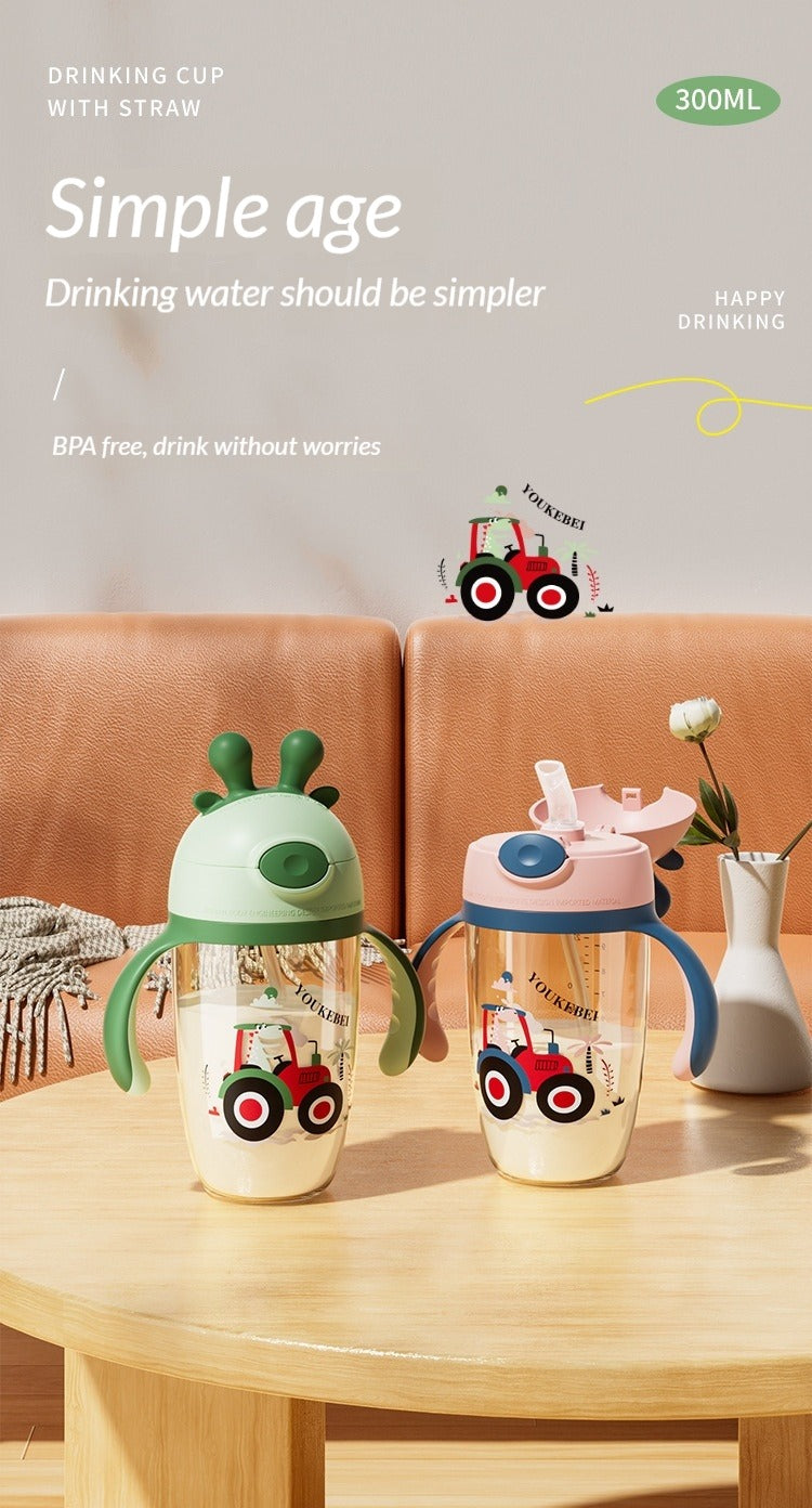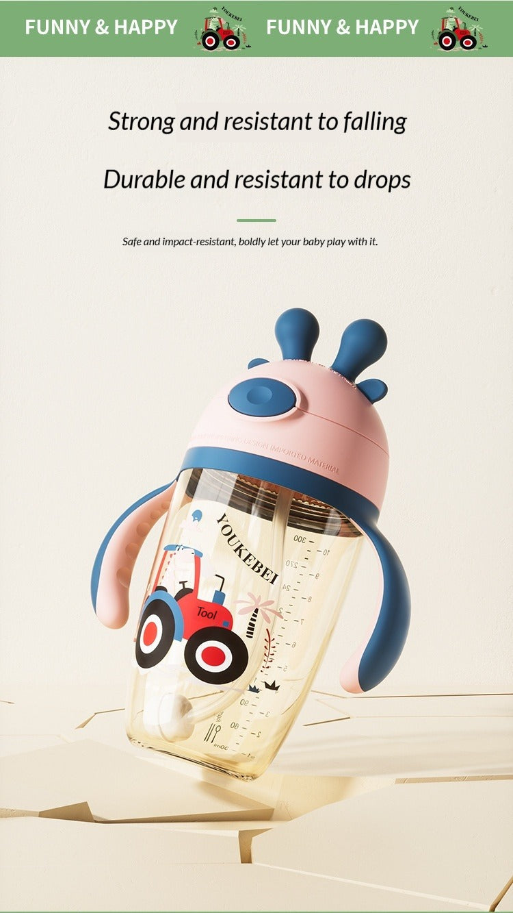 Baby Bottle & Training Cup 6 Months+ Flip-Top Straw Cup for Toddlers 1 Year+  3-in-1 Leak-Proof Drinking Cup with Handles