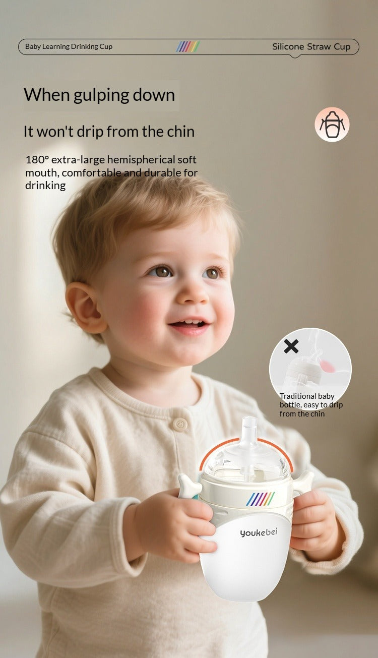 • 180° Wide Soft Spout: Large, dome-shaped silicone spout fits the mouth naturally, gentle on gums and bite-resistant.