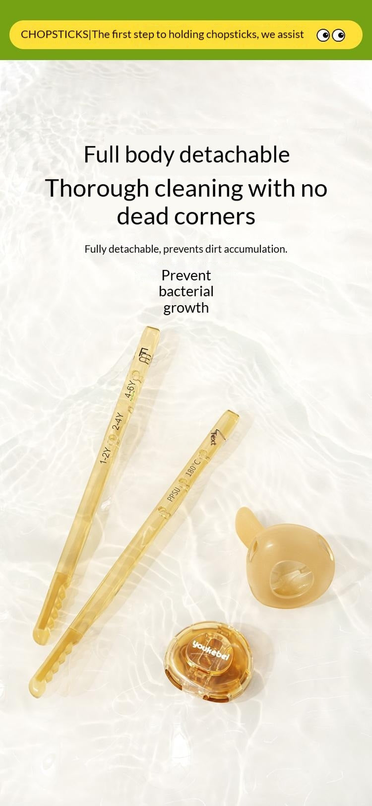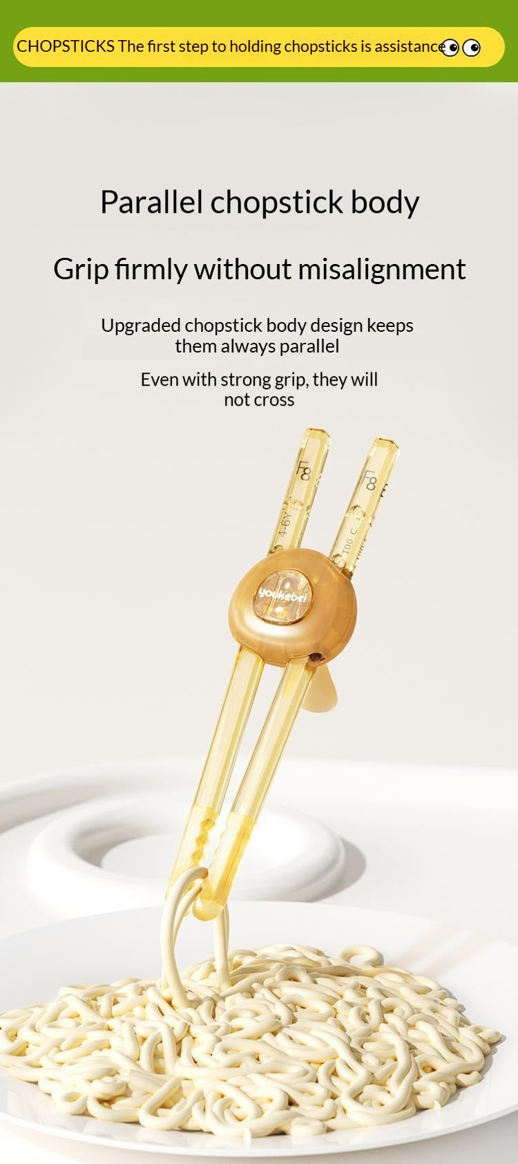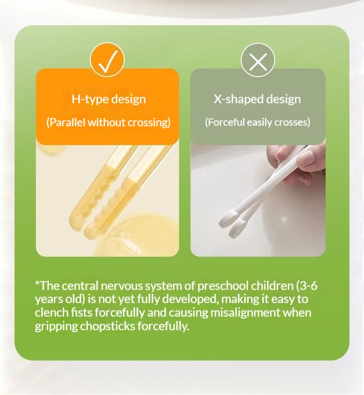 • 20mm Scientific Support Width: Compared to common training chopsticks (32–34mm), the slimmer 20mm width better matches babies’ hand development, making it easier to grip securely without slipping.