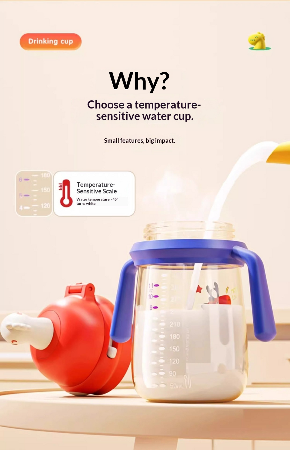 Cute Dinosaur Look: Fun colors and character design encourage babies to drink more.