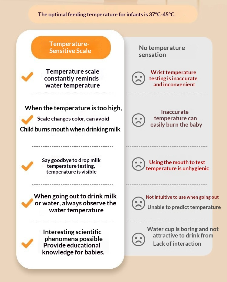 Heat-Sensitive Scale: Markings turn white when liquid temperature exceeds 45°C, providing a clear visual warning to help prevent burns.