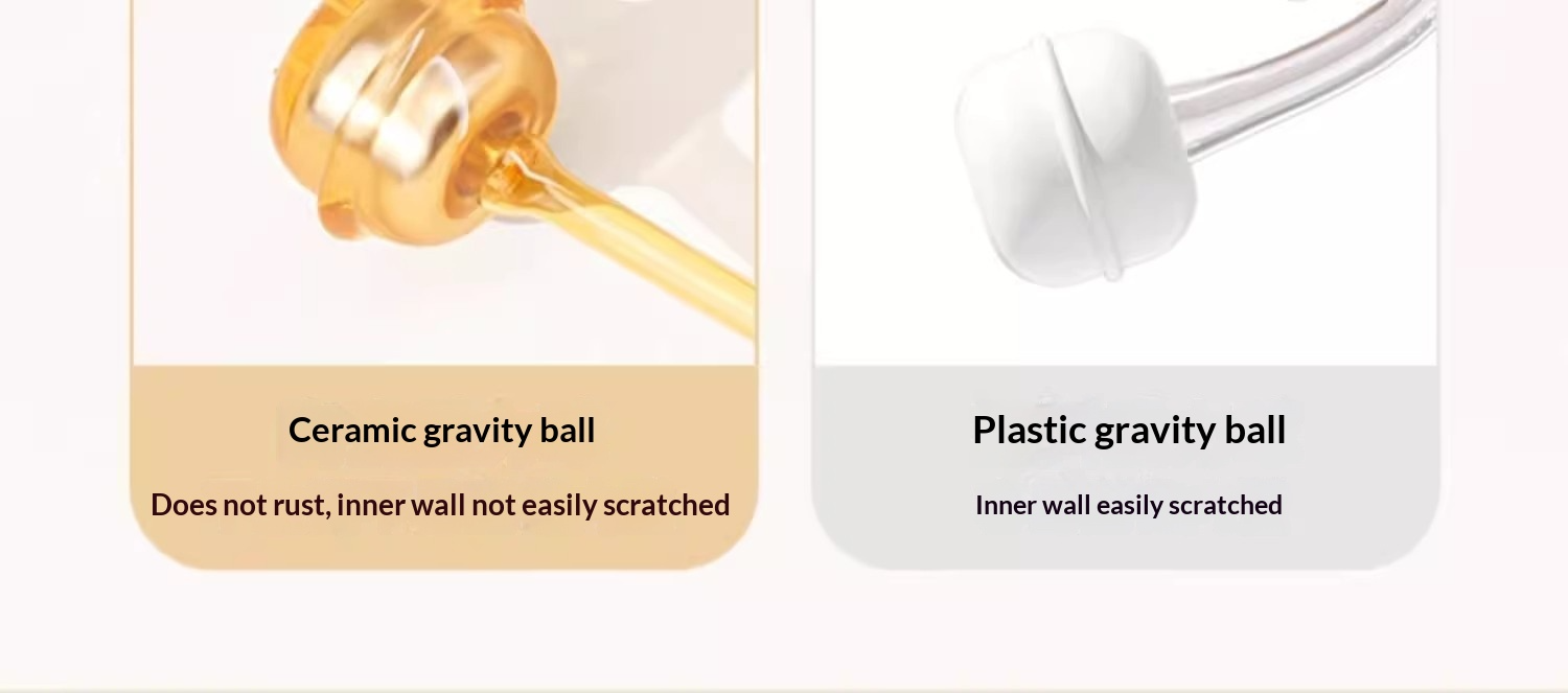 Ceramic-Coated Gravity Ball: Durable, stretch-resistant design that won’t scratch the inner surface of the cup.