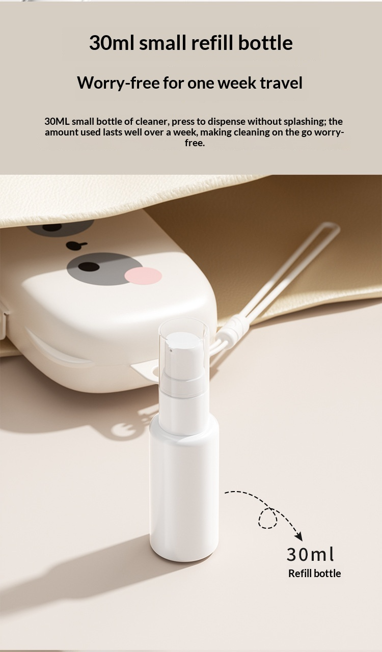 เคสกันฝุ่นและทนทานต่อแรงกระแทก พกพาสะดวกใส่กระเป๋าผ้าอ้อมได้ง่าย มาพร้อมขวดใส่ผงซักฟอกขนาด 30 มล. สำหรับการทำความสะอาดนอกบ้านได้อย่างสะดวกโดยไม่เลอะเทอะ