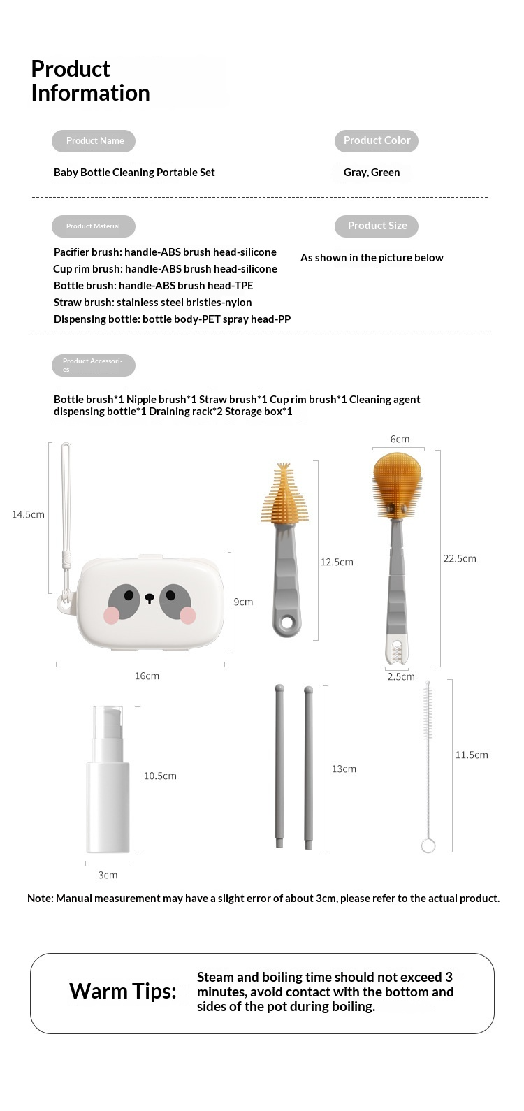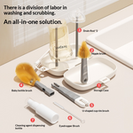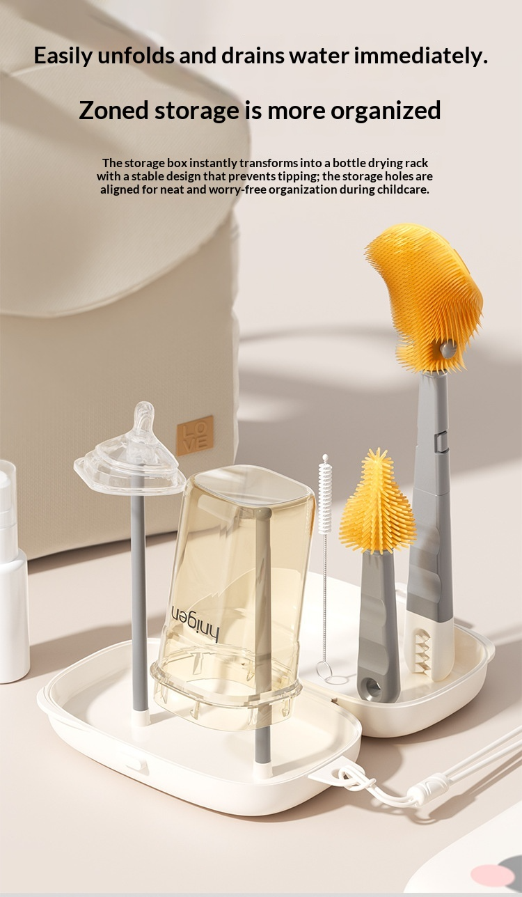 ชุดแปรงทำความสะอาดขวดนมอเนกประสงค์ | แปรงซิลิโคนสำหรับจุกนมและหลอดดูด พร้อมที่วางตากในตัว | ชุดพกพาสำหรับเดินทาง