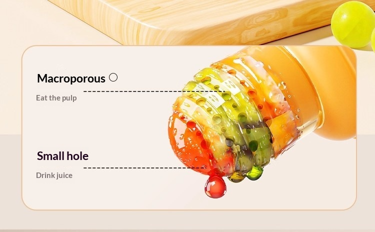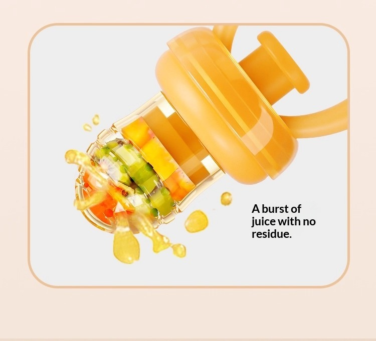 น้ำผลไม้ไหลสม่ำเสมอ ไม่กระเด็นหรืออุดตัน ช่วยป้องกันการสำลักและไอ -