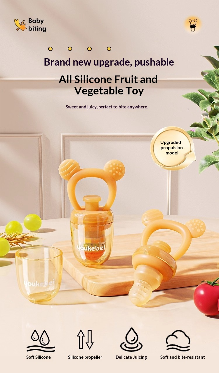 ที่ป้อนอาหารเด็กแบบซิลิโคนทั้งหมด ป้องกันการสำลัก สำหรับป้อนผักและผลไม้ ใช้งานได้ 2 ใน 1 ทั้งเป็นยางกัดและที่ดูดเหงือก