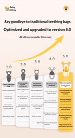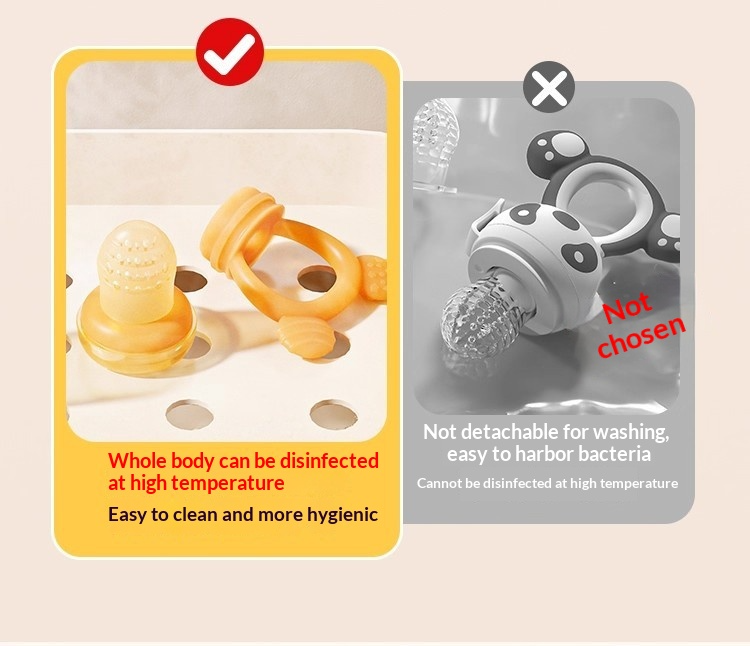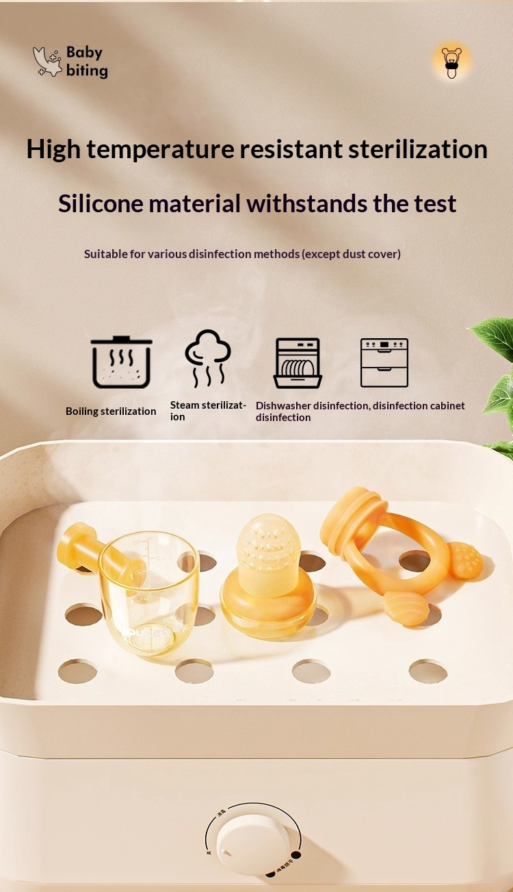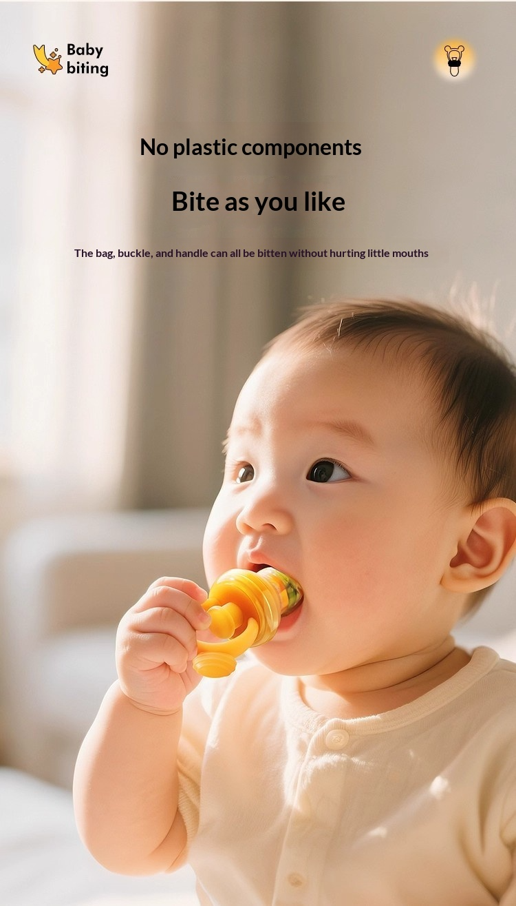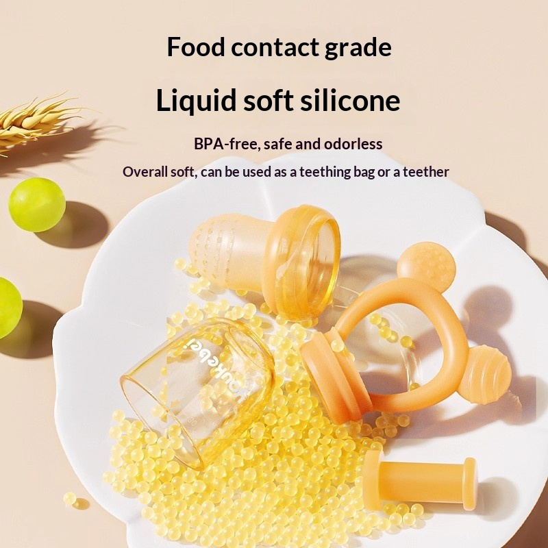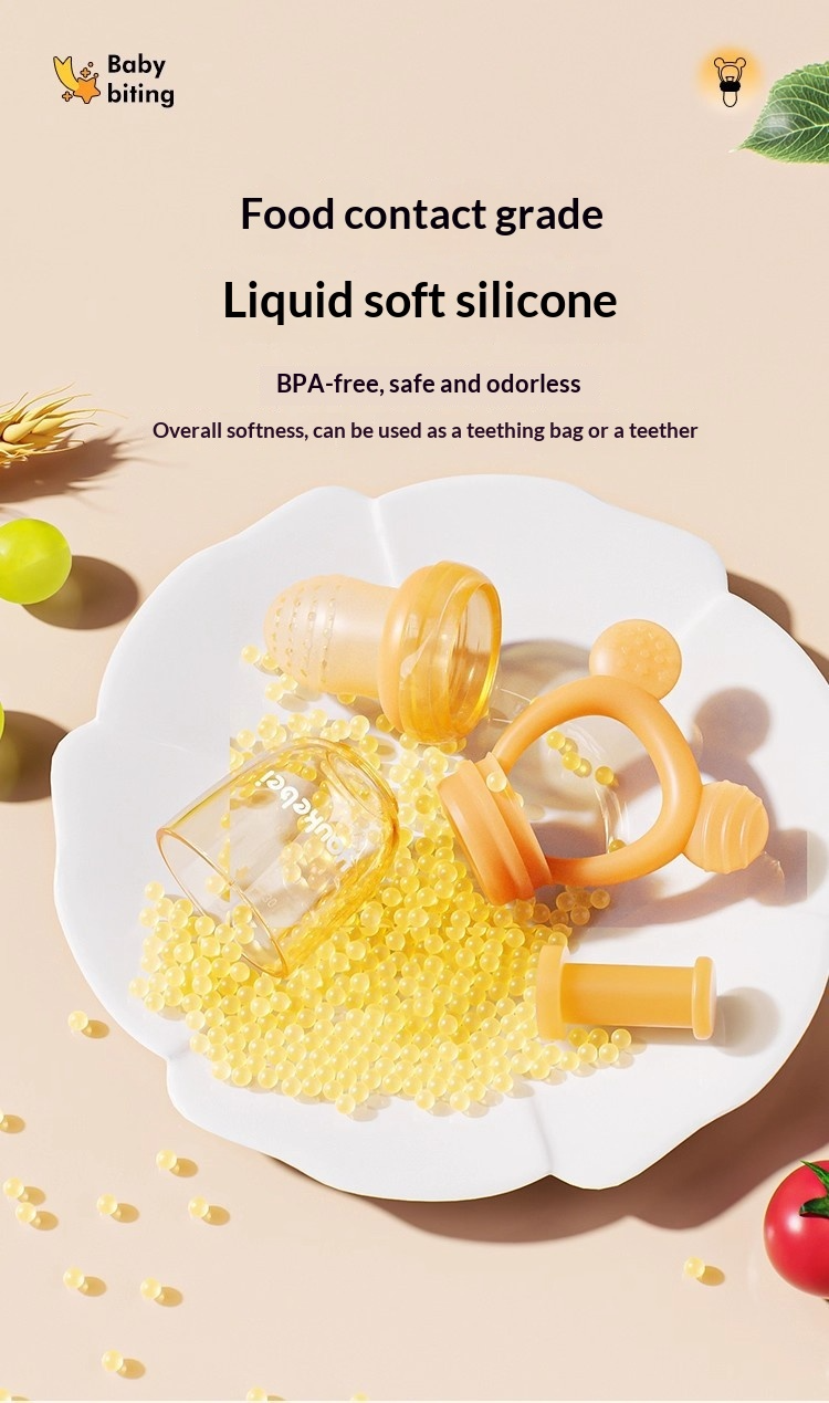 ปราศจากสาร BPA นุ่ม และไม่มีกลิ่น ปลอดภัยสำหรับการเคี้ยวและอ่อนโยนต่อเหงือก ใช้ได้ทั้งเป็นของเล่นสำหรับป้อนอาหารและของเล่นกัดฟัน -