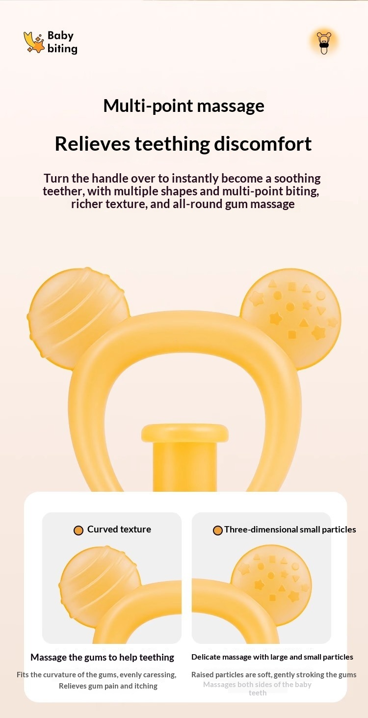 ด้ามจับที่มีพื้นผิวหลายแบบช่วยบรรเทาอาการเหงือกอักเสบและลดความไม่สบายตัวจากการงอกของฟัน -