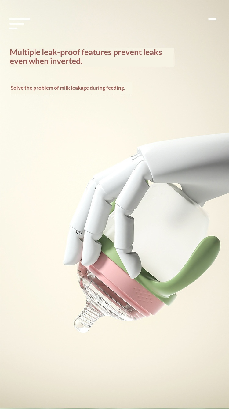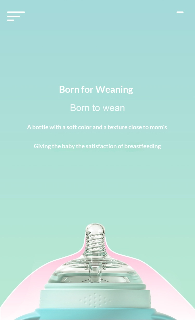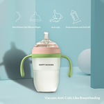 จุกนมที่เหมือนเต้านมและระบบดูดสุญญากาศป้องกันอาการจุกเสียด ช่วยให้ทารกปรับตัวได้อย่างราบรื่นในช่วงหย่านม ลดการปฏิเสธการกินนม ท้องอืด และความไม่สบายตัว