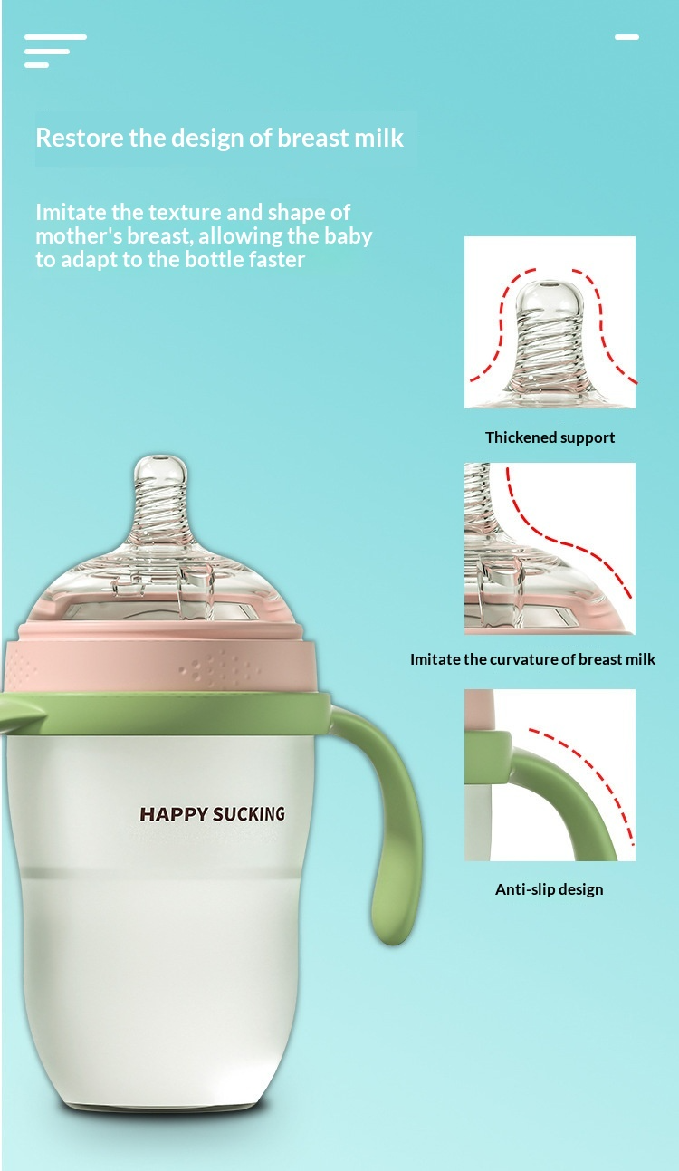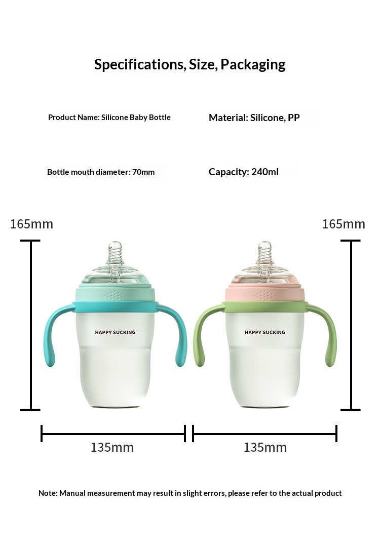 ขวดนมซิลิโคนป้องกันอาการจุกเสียดสำหรับทารก เนื้อสัมผัสคล้ายเต้านม เหมาะสำหรับเด็กแรกเกิด