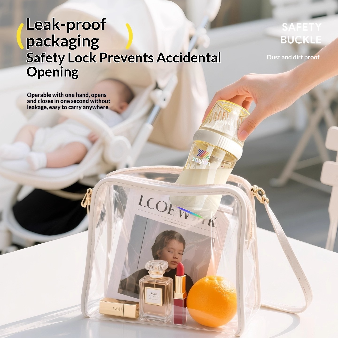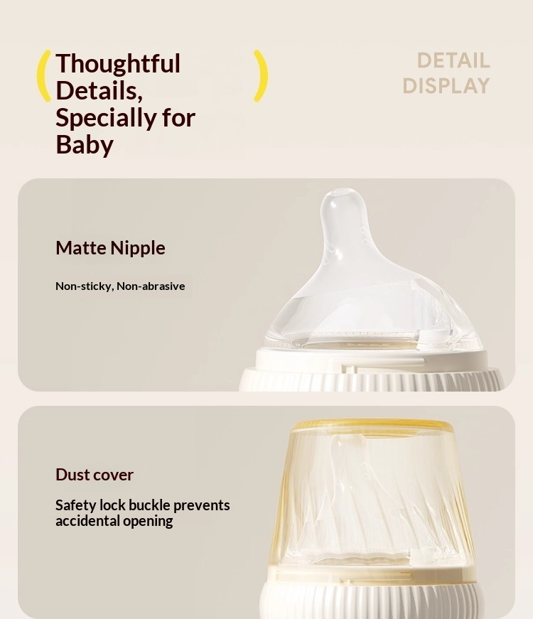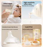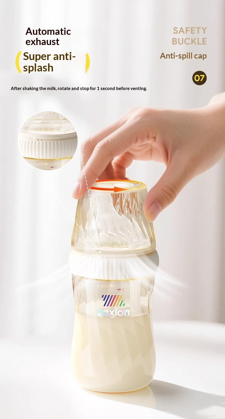ดีไซน์ป้องกันการหกและพร้อมสำหรับการเดินทาง – ระบบระบายอากาศอัตโนมัติ ช่องเปิดป้องกันการกระเด็น ตัวล็อคที่ปลอดภัย และซีลป้องกันการรั่วซึม เหมาะสำหรับการให้นมในท่าตั้งตรงหรือนอนราบ