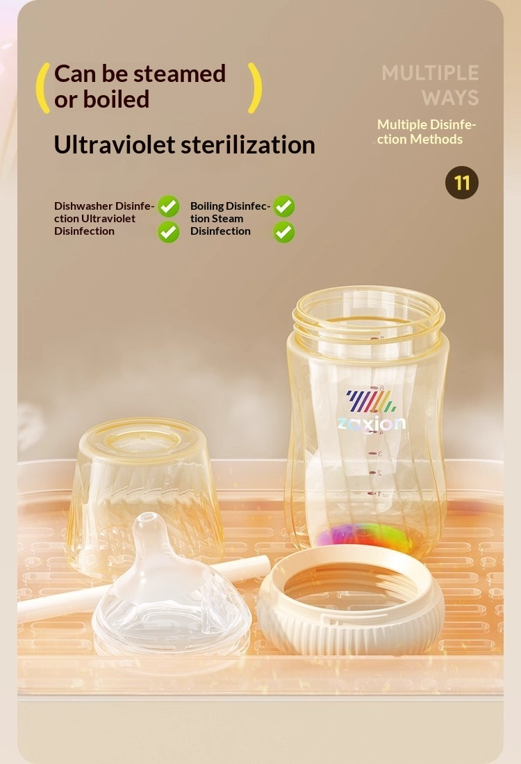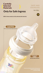 ตัวขวดทำจากวัสดุ PPSU คุณภาพสูง – น้ำหนักเบา ทนทานต่อการแตกหัก ปราศจาก BPA ปลอดภัยสำหรับการต้ม การนึ่ง การฆ่าเชื้อด้วยรังสียูวี และการล้างในเครื่องล้างจาน โดยไม่มีกลิ่น