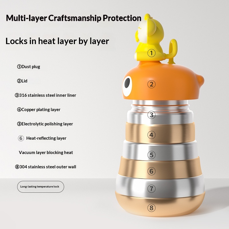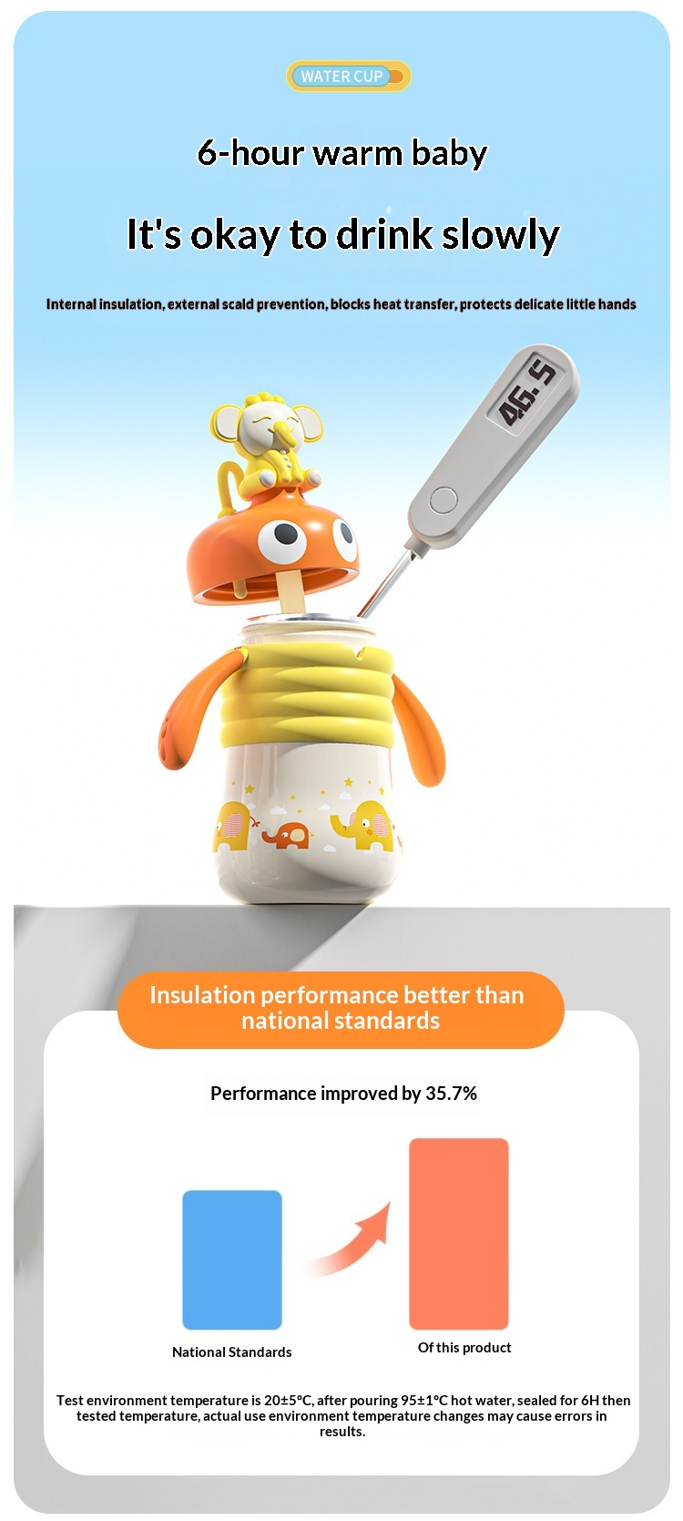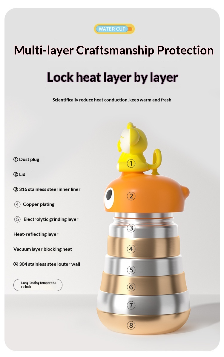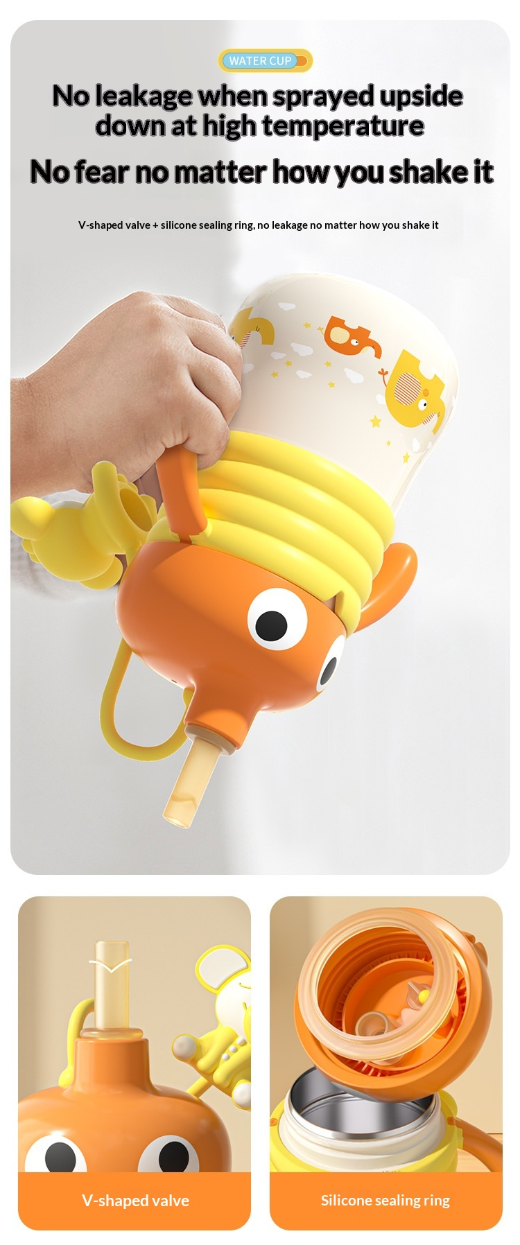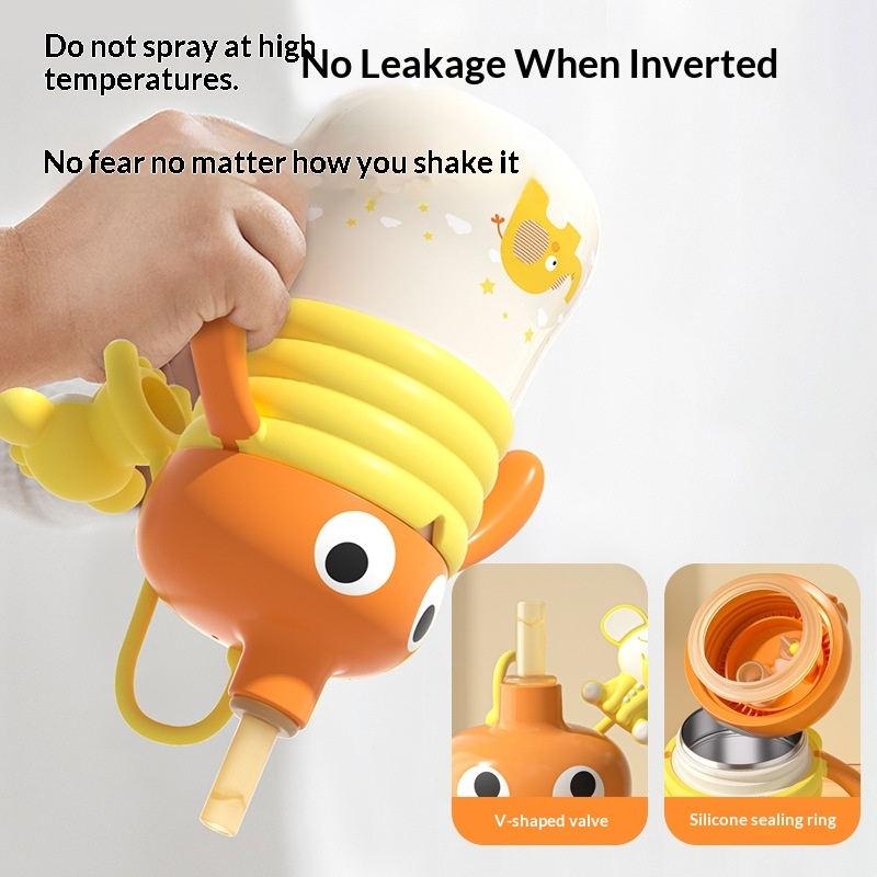 Cute Animal Milk & Water Cup with Straw, 316 Stainless Steel