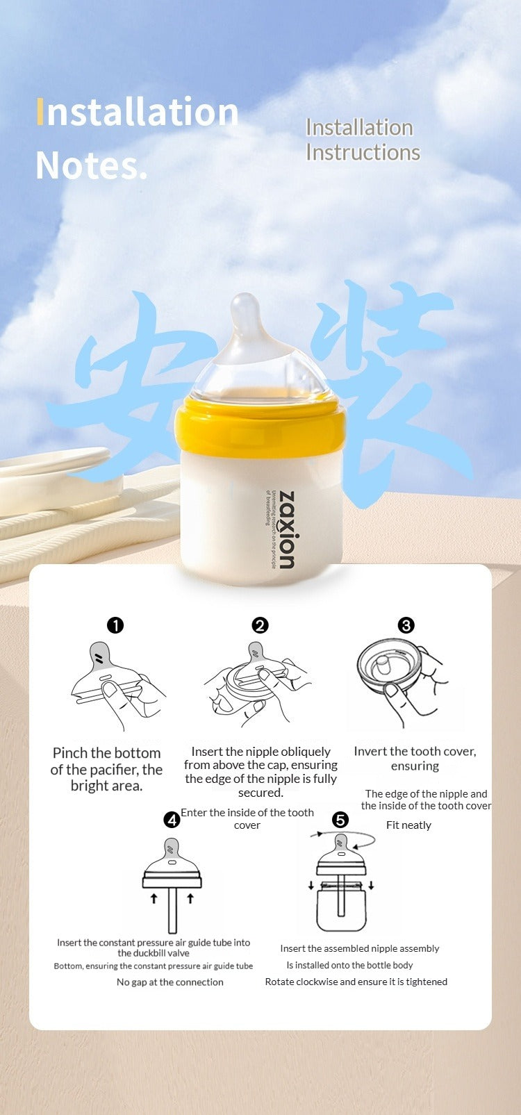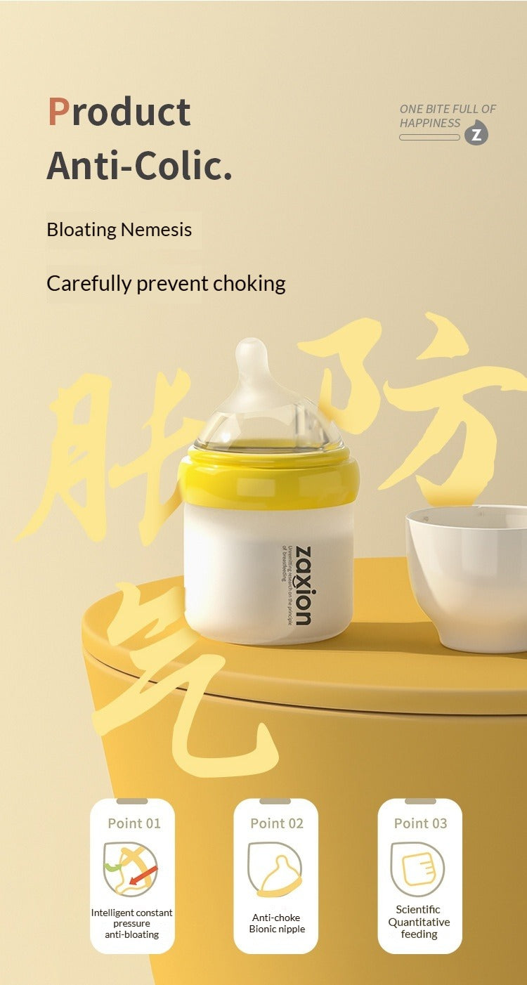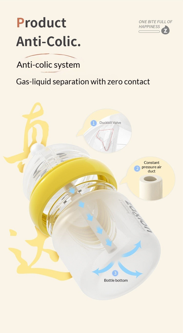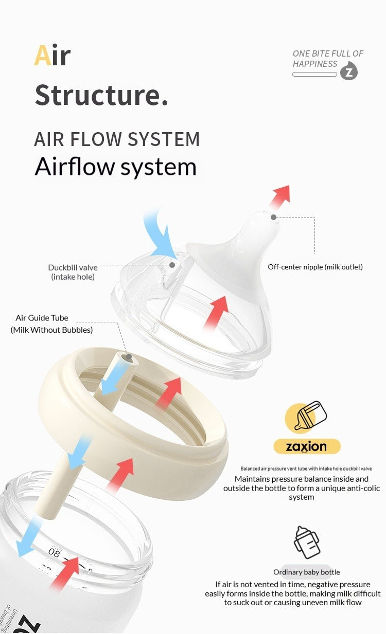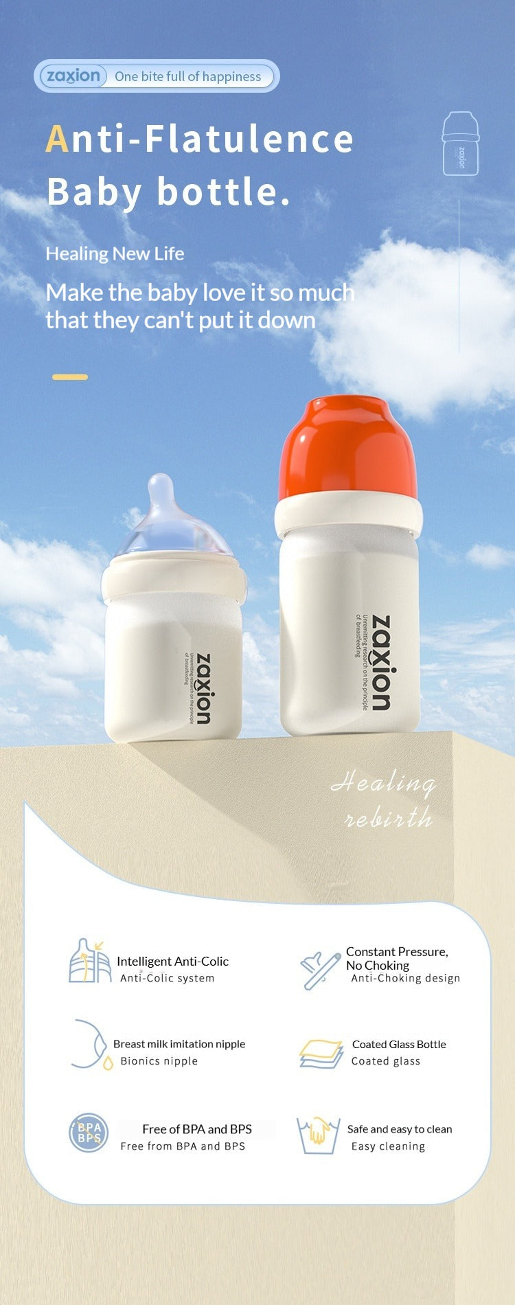 Bình sữa thủy tinh chống đầy hơi cho trẻ sơ sinh, có van xả áp suất ổn định giống như bú mẹ, không gây sặc.