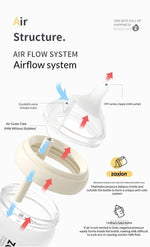 Van mỏ vịt kết hợp với hệ thống thông hơi áp suất không đổi giúp ngăn không khí tiếp xúc với sữa, giảm bọt khí, đầy hơi, nôn trớ và quấy khóc ngay từ nguồn. -
