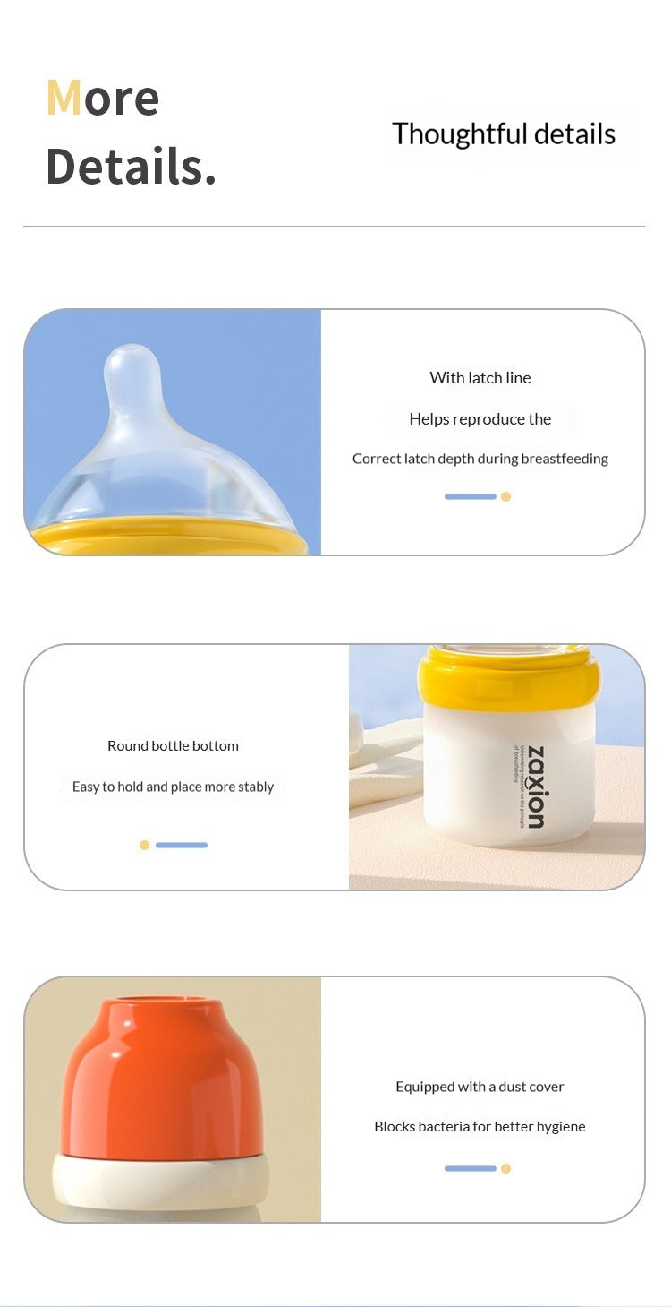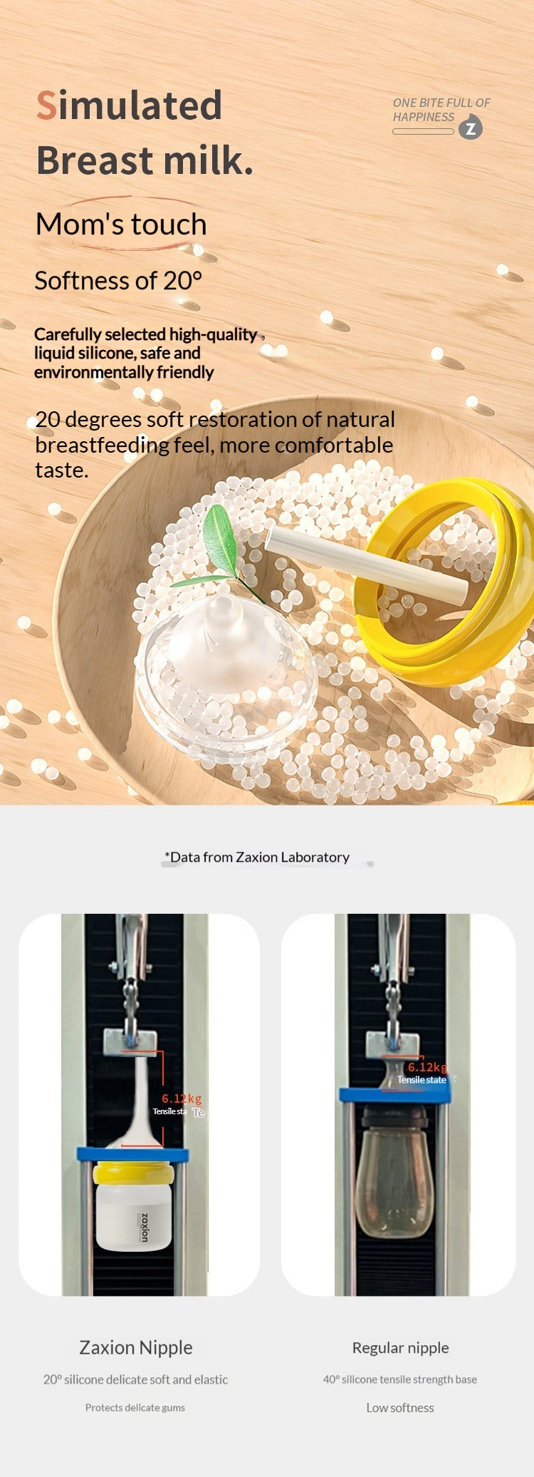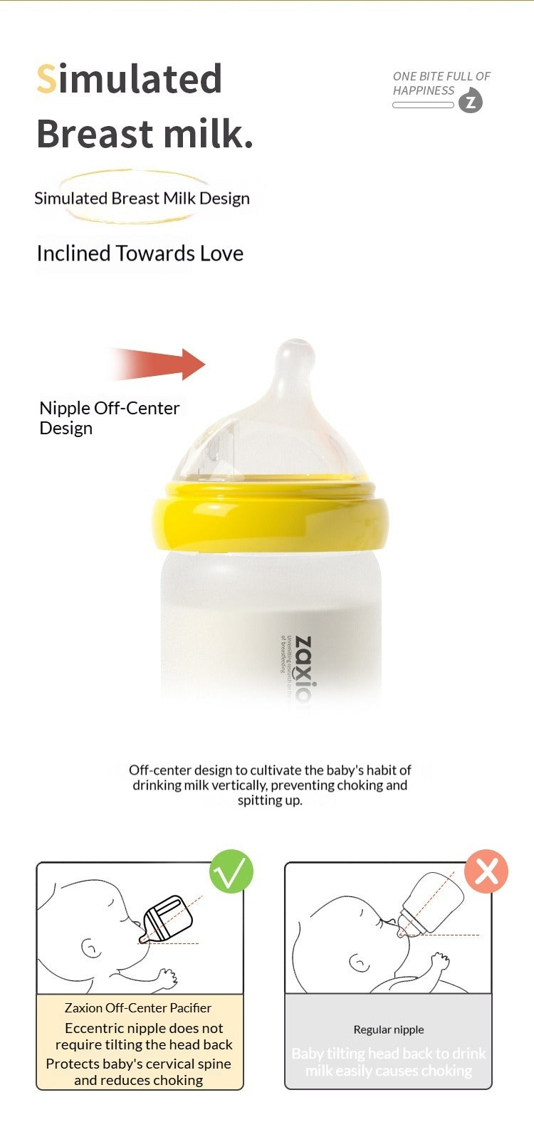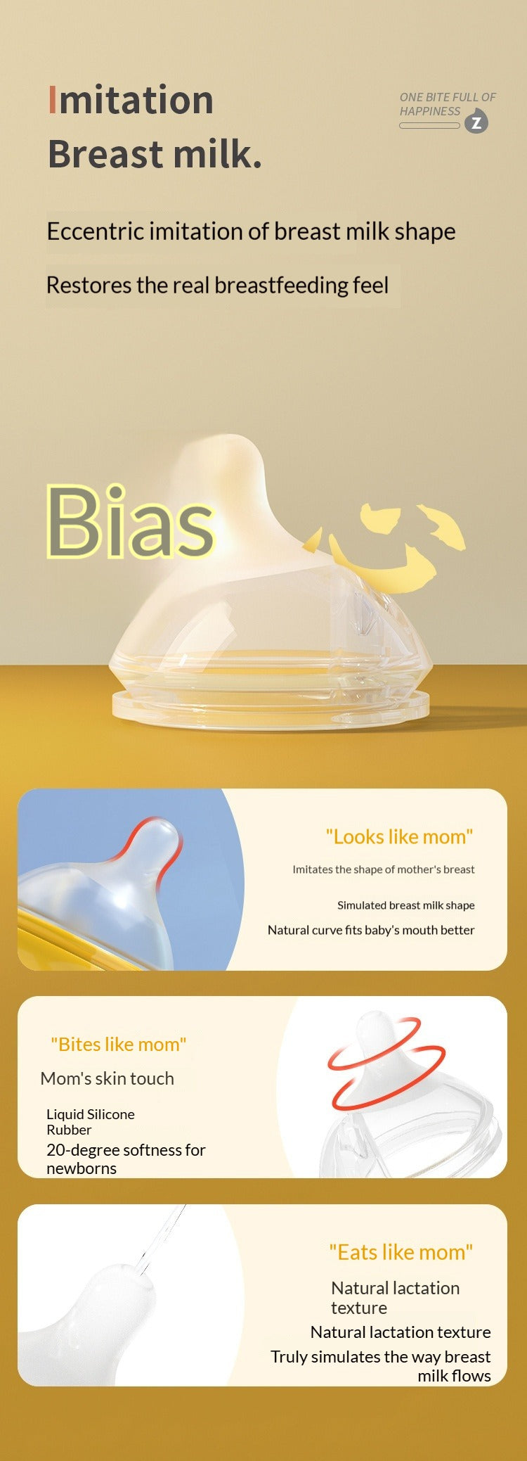 Thiết kế núm vú lệch tâm + silicon lỏng siêu mềm 20° mô phỏng việc cho con bú tự nhiên, bảo vệ cổ và giúp việc chuyển đổi dễ dàng hơn. -
