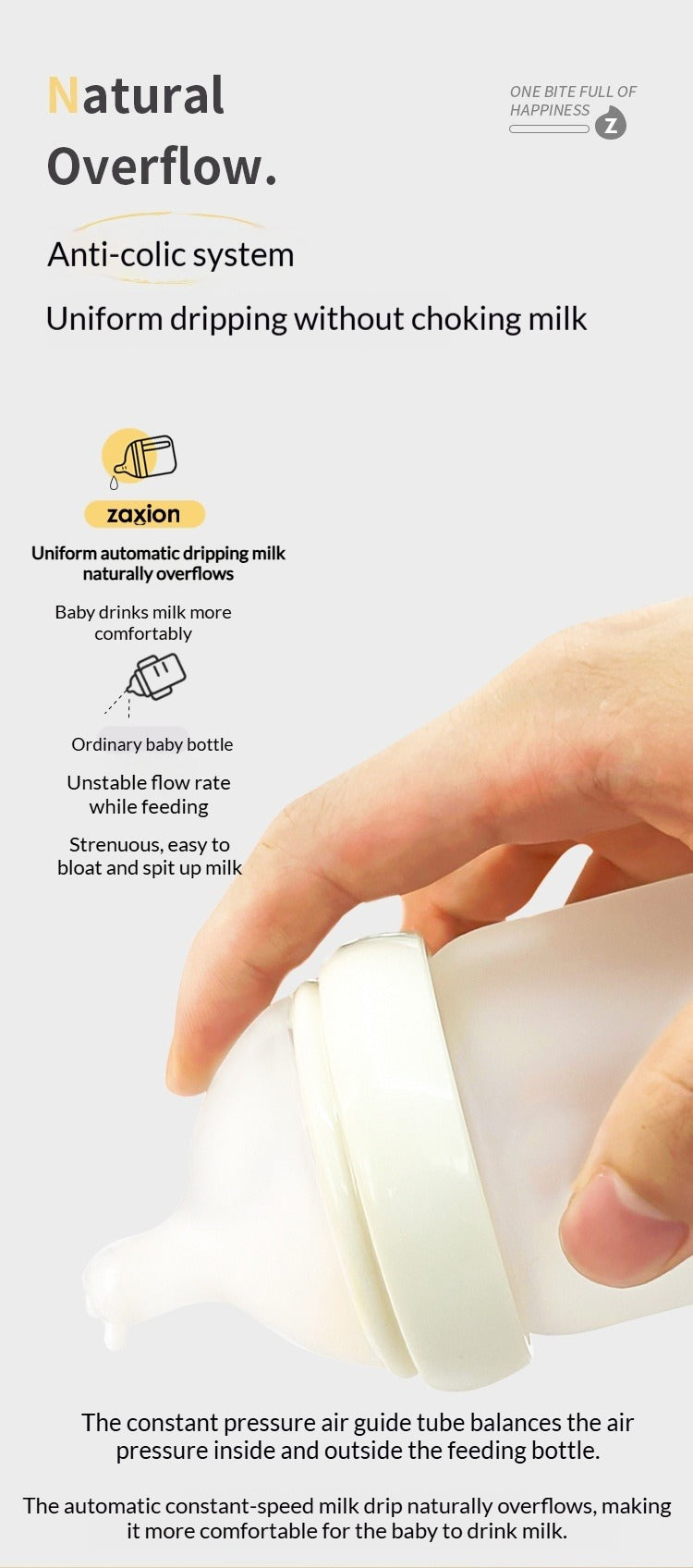 Khả năng thông khí hiệu quả ngay cả khi bình sữa bị nghiêng hoặc lộn ngược, cho phép cho bé bú thoải mái khi nằm mà không lo nuốt phải không khí. -
