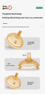 Núm vú mềm mại dành cho trẻ sơ sinh + vòi rót ở giữa dành cho trẻ từ 12 tháng tuổi trở lên — hỗ trợ mọi giai đoạn phát triển.