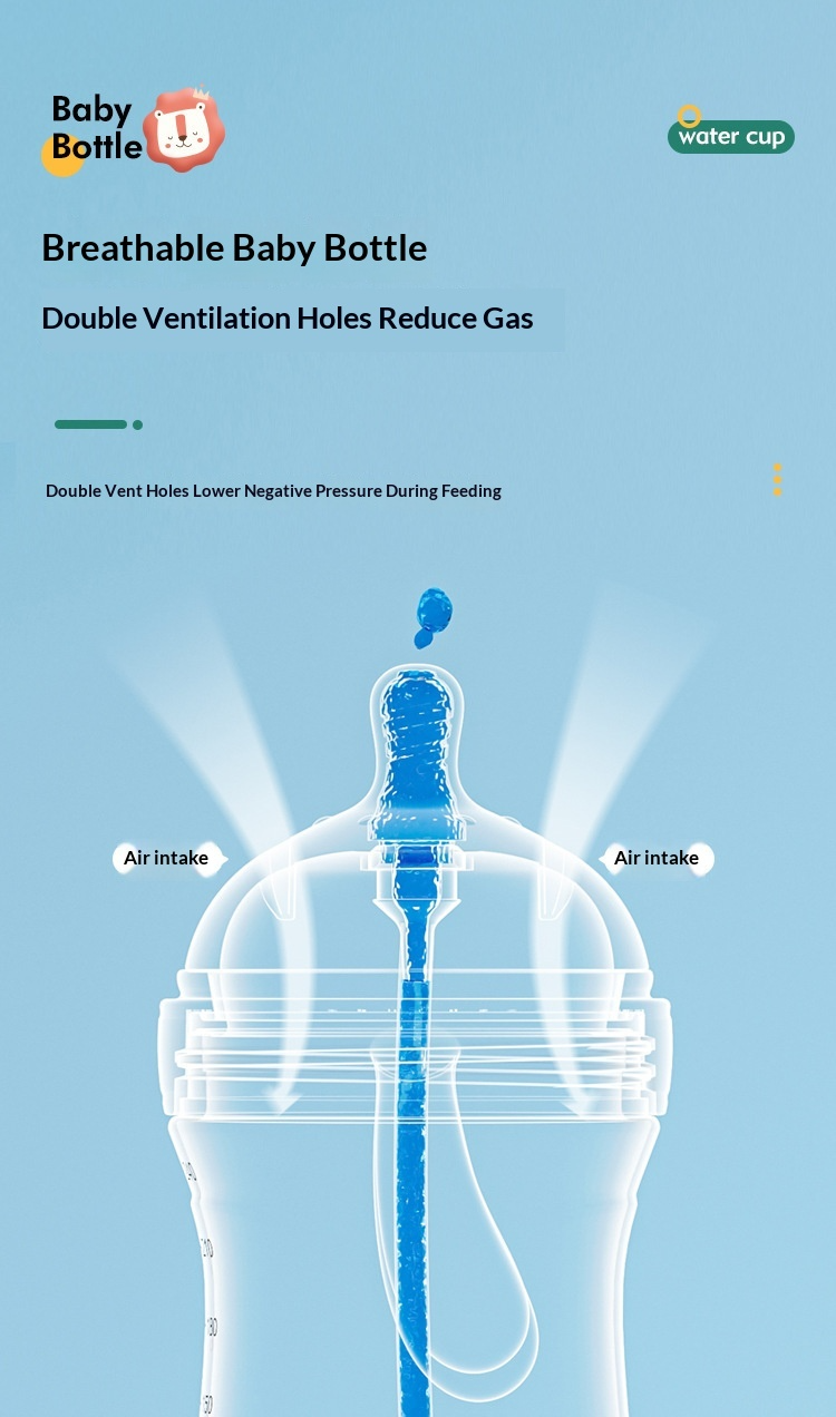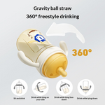 Hệ thống van kép chống đầy hơi giúp giảm lượng khí nuốt vào; ống hút hình cầu xoay 360° cho phép uống ở mọi tư thế.
