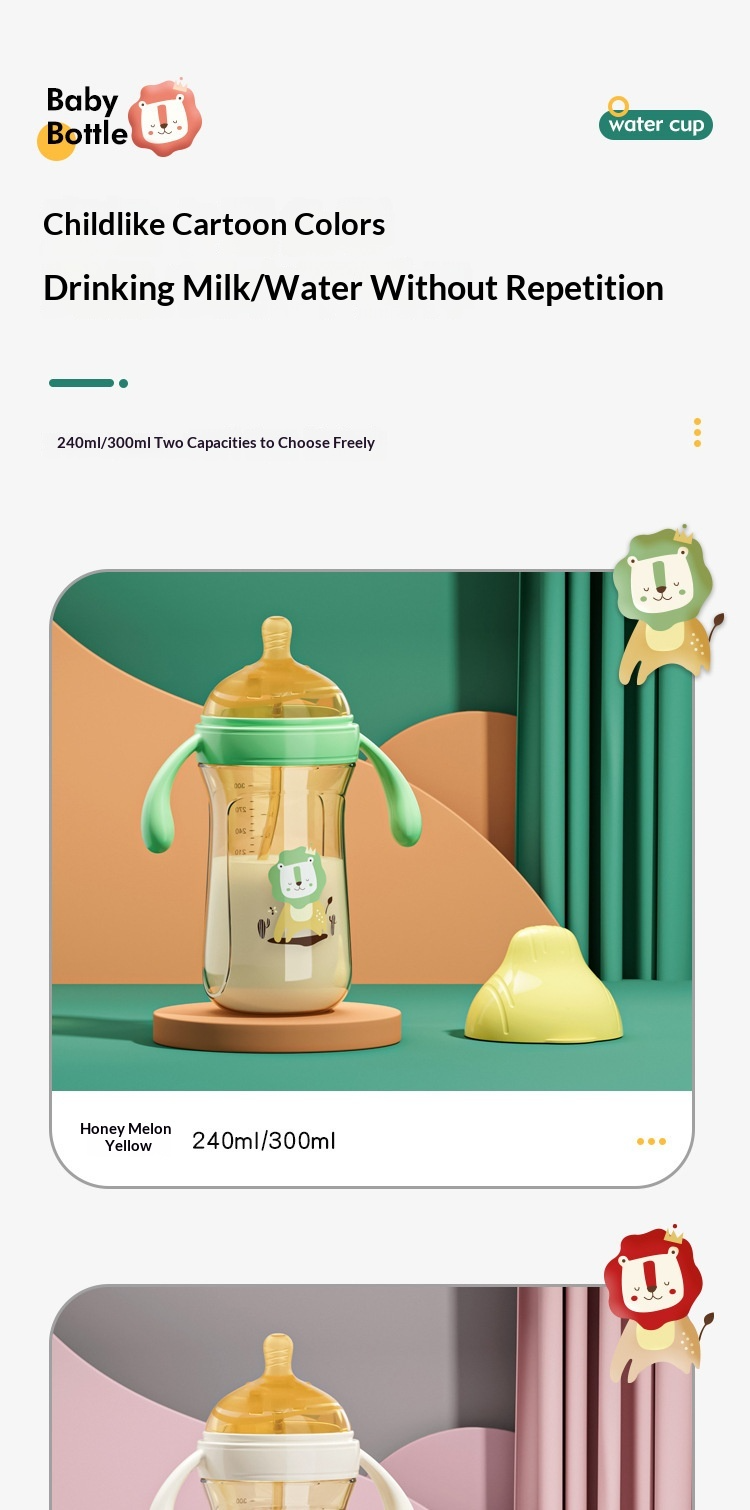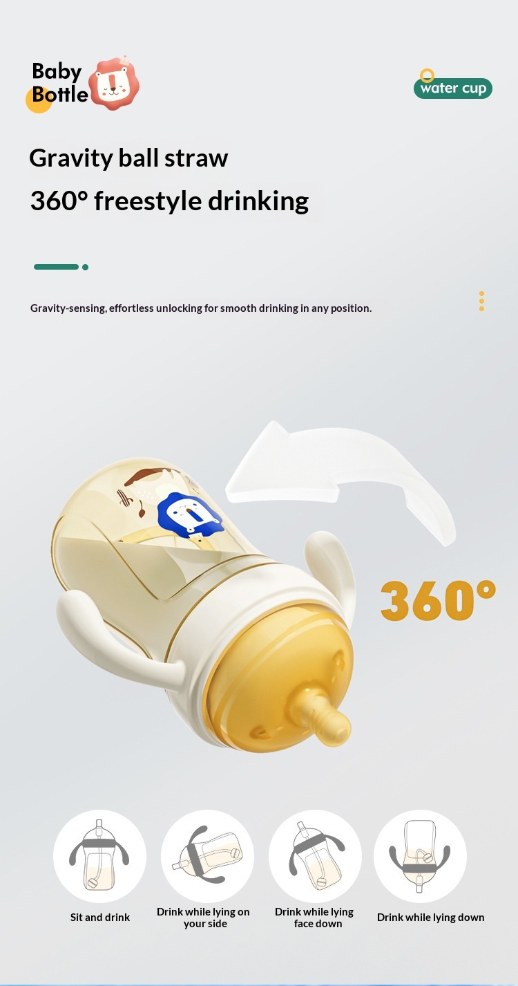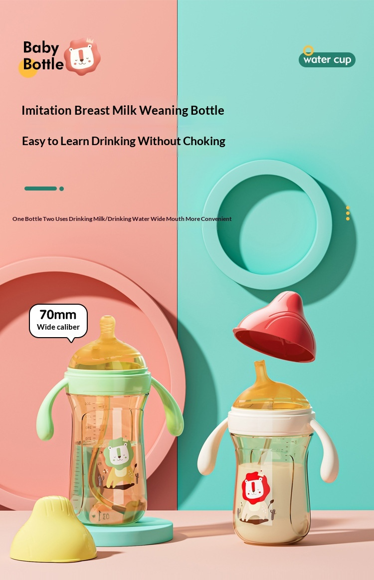 Bình sữa PPSU chống đầy hơi, chống vỡ, có ống hút, cốc tập uống 2 trong 1, bình sữa tăng trưởng.