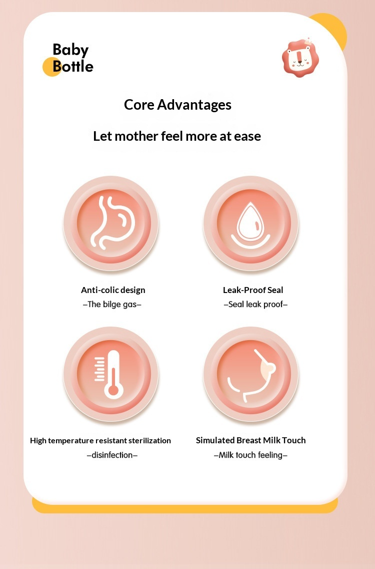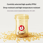 Chất liệu PPSU bền chắc, chịu được nhiệt độ từ -20°C đến 180°C , không chứa BPA và an toàn khi tiệt trùng; núm vú mềm mại, mô phỏng bầu vú mẹ tạo cảm giác quen thuộc và giảm sự phản kháng khi cai sữa.
