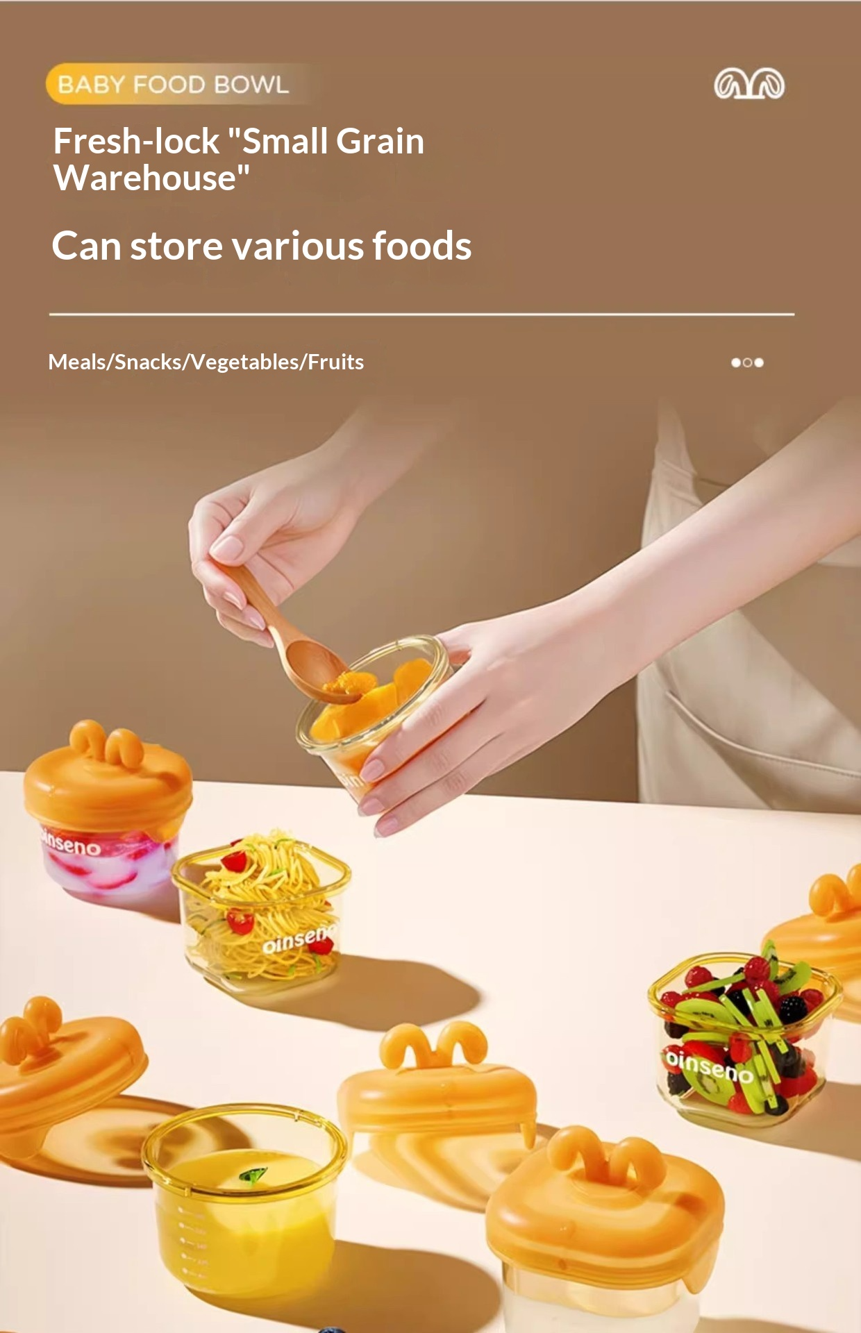 Clear 50ml–260ml measurement markings help control portions as your baby grows. Airtight dust-proof lid keeps food fresh and portable.